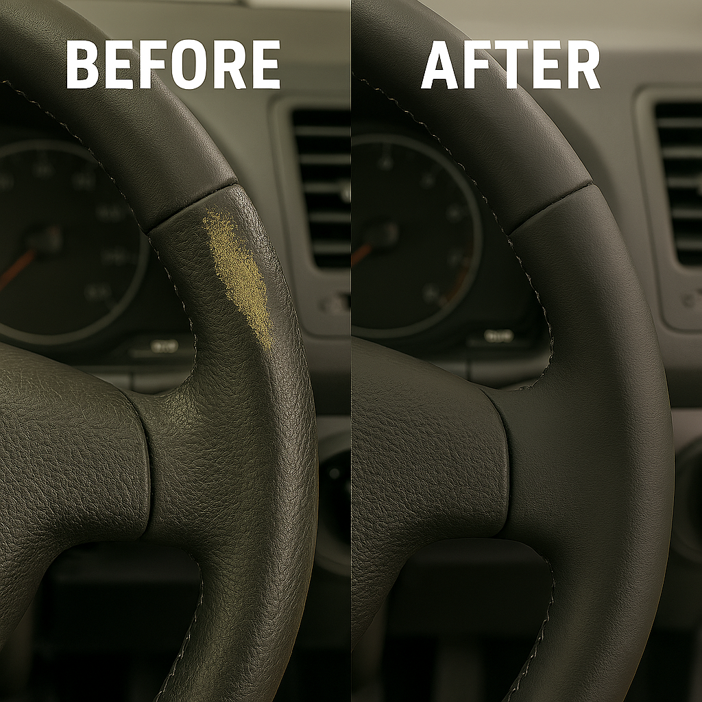 車のハンドル、革シートリペア、リカラーします