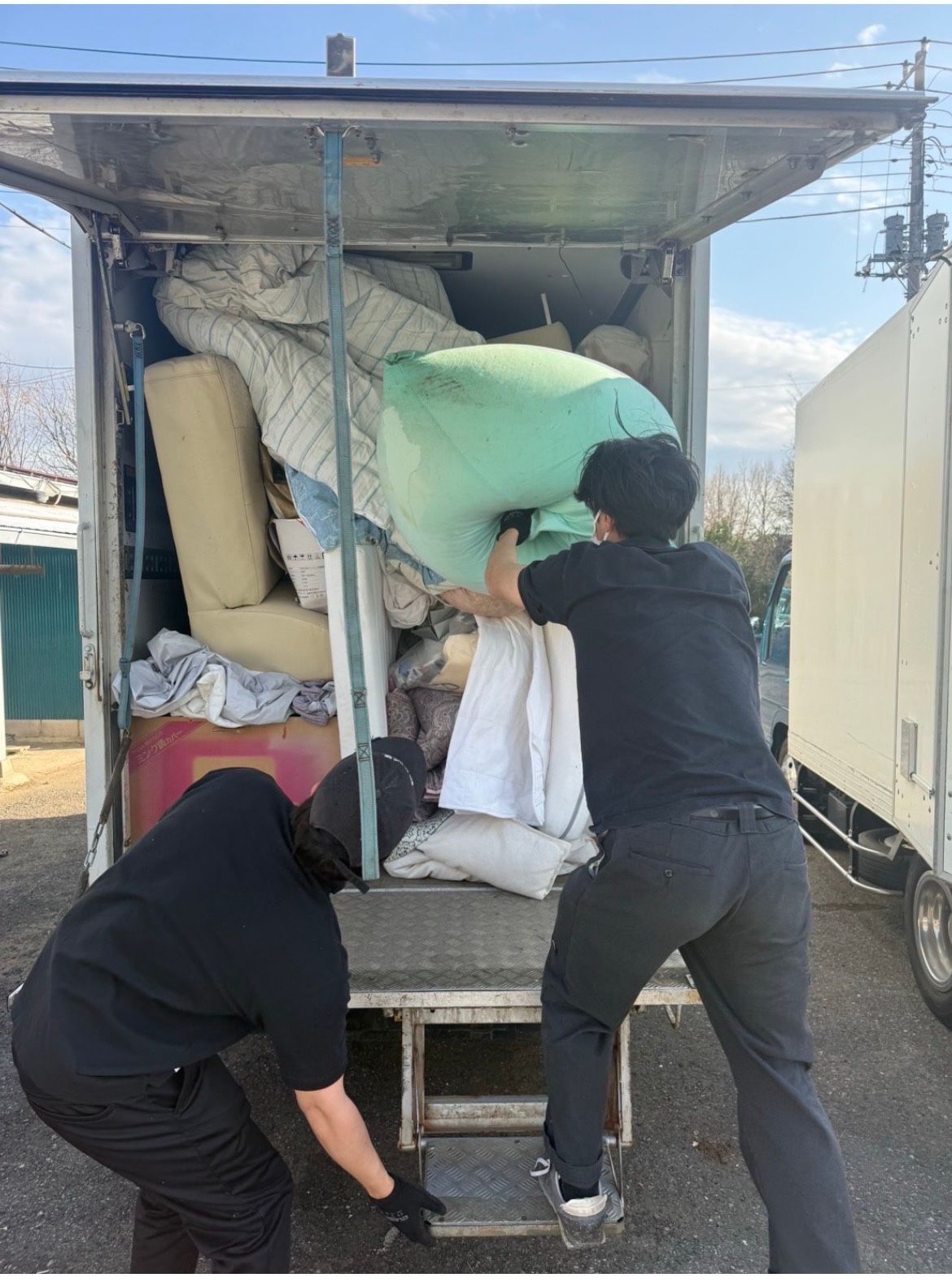 不用品回収の中でも、引越し前の片付けは荷物が散らばりやすいので、まず通路を作ってから搬出。出張買取品は角当てして丁寧に📦