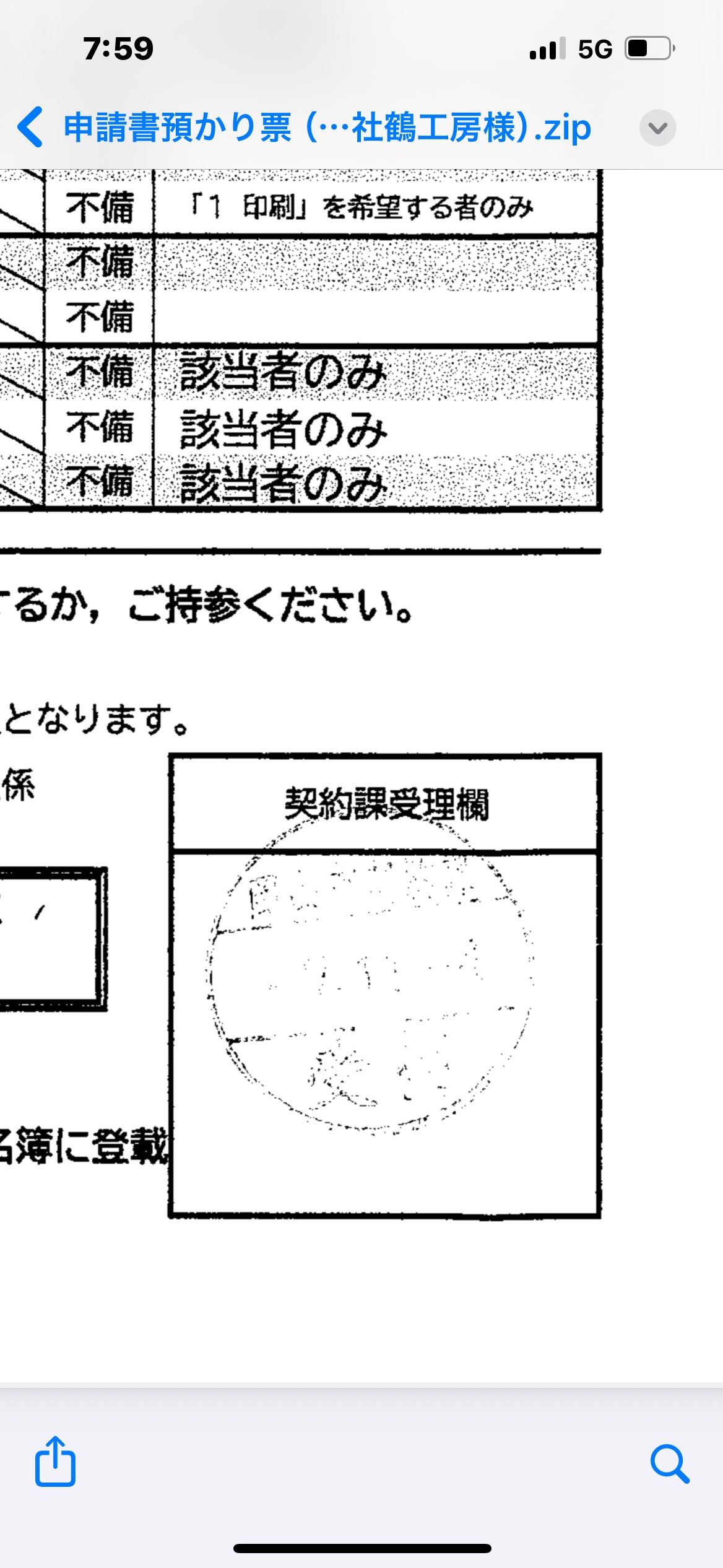昨日は岡山市の契約課で申請を受理してもらいました。