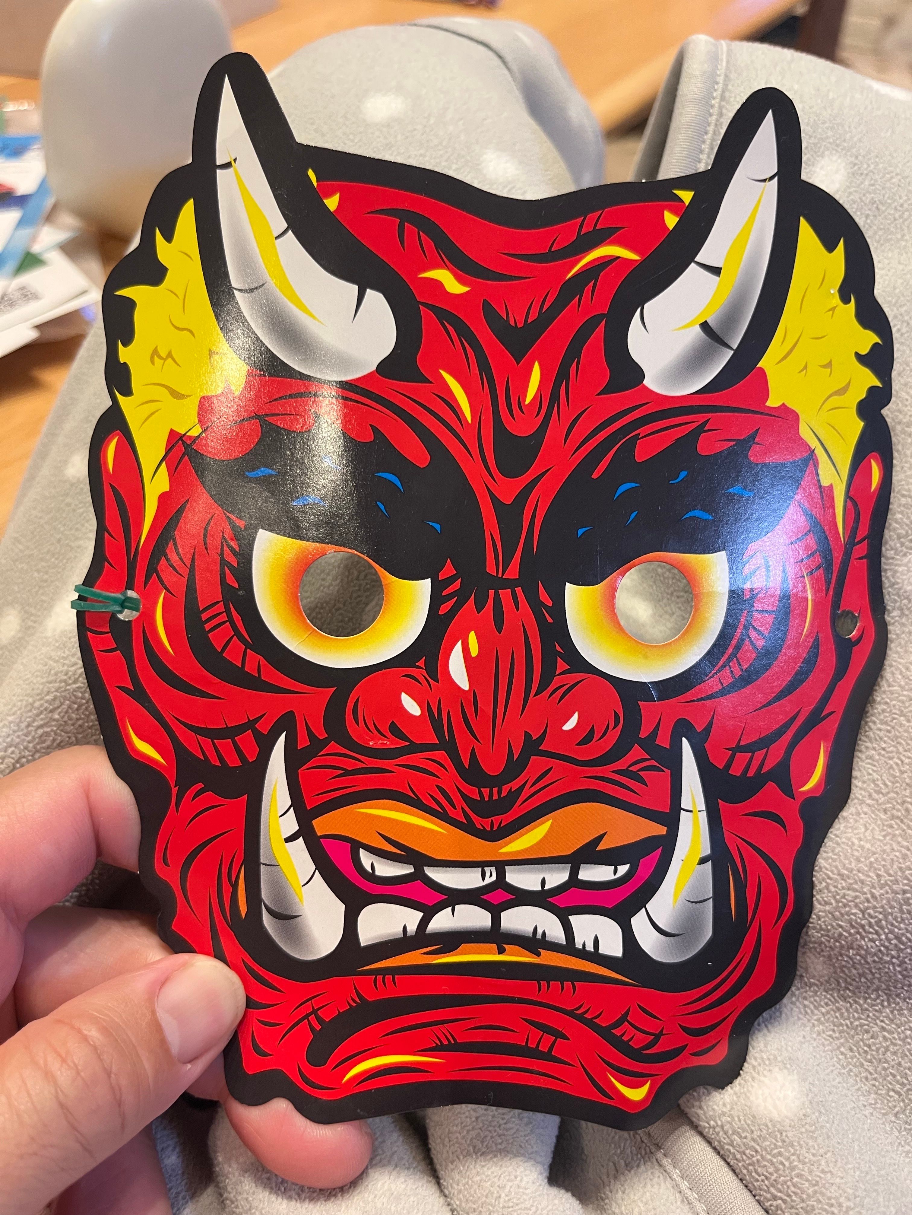 鬼の仮面で怪しさ満点ですが、家族行事としては大事ですよね。