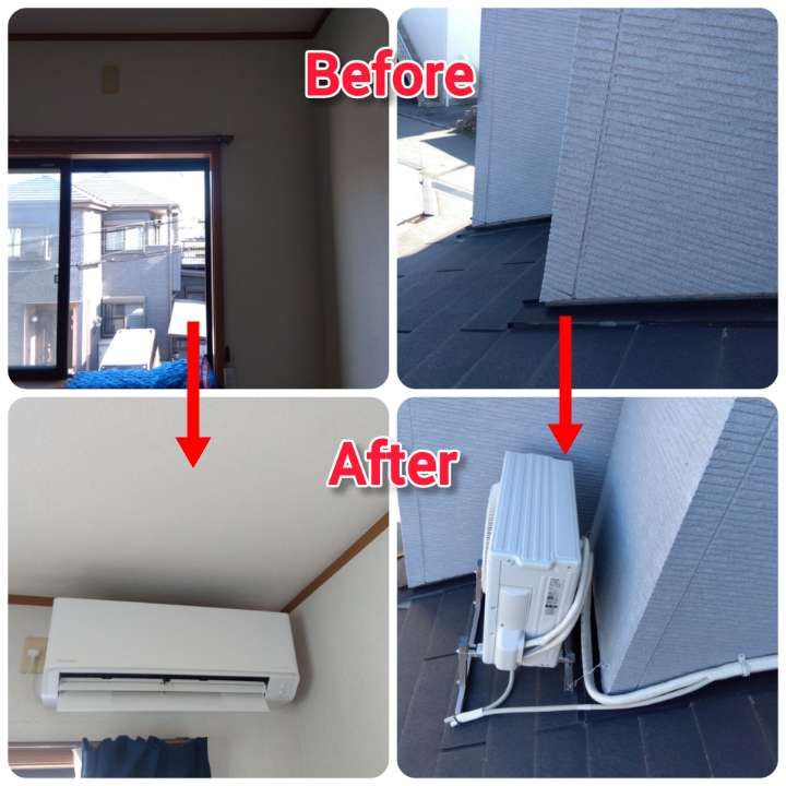 このパナソニックのスタンダードモデルは何がいいかと申しますと、室内機のパネルがネジ1ヶ所外すだけで外せてしまうという業者目線では最高に施工しやすいモデルです。内パテもですし、隠蔽配管施工が非常にやりやすいので、これをご覧のお客様で隠蔽配管の方はこれを選ぶべき!施工ミスが格段に少ないと思います。ですが、当店では工事保証の観点より、隠蔽配管の入れ替えは行なっておりません。他、アスベスト対策等は対応可能ですので、何かございましたらご相談下さい(^^)