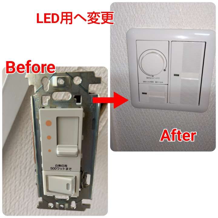 監督さんにはその旨伝え、お客様支給品の為、お客様に改めて調光対応のLEDクリプトン球をお買い求め頂くこととなりました。