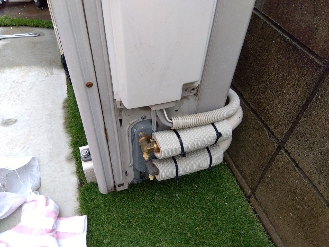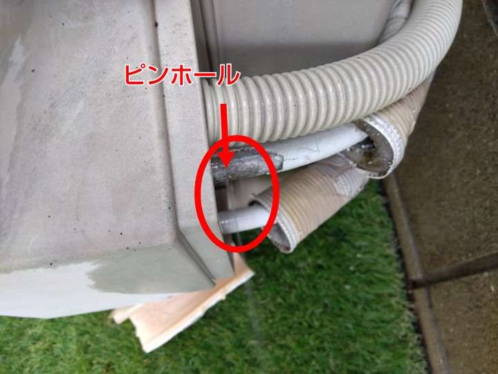 10年前に自分が施工したエコキュートのヒートポンプの渡り配管のピンホールによる水漏れの修復へ