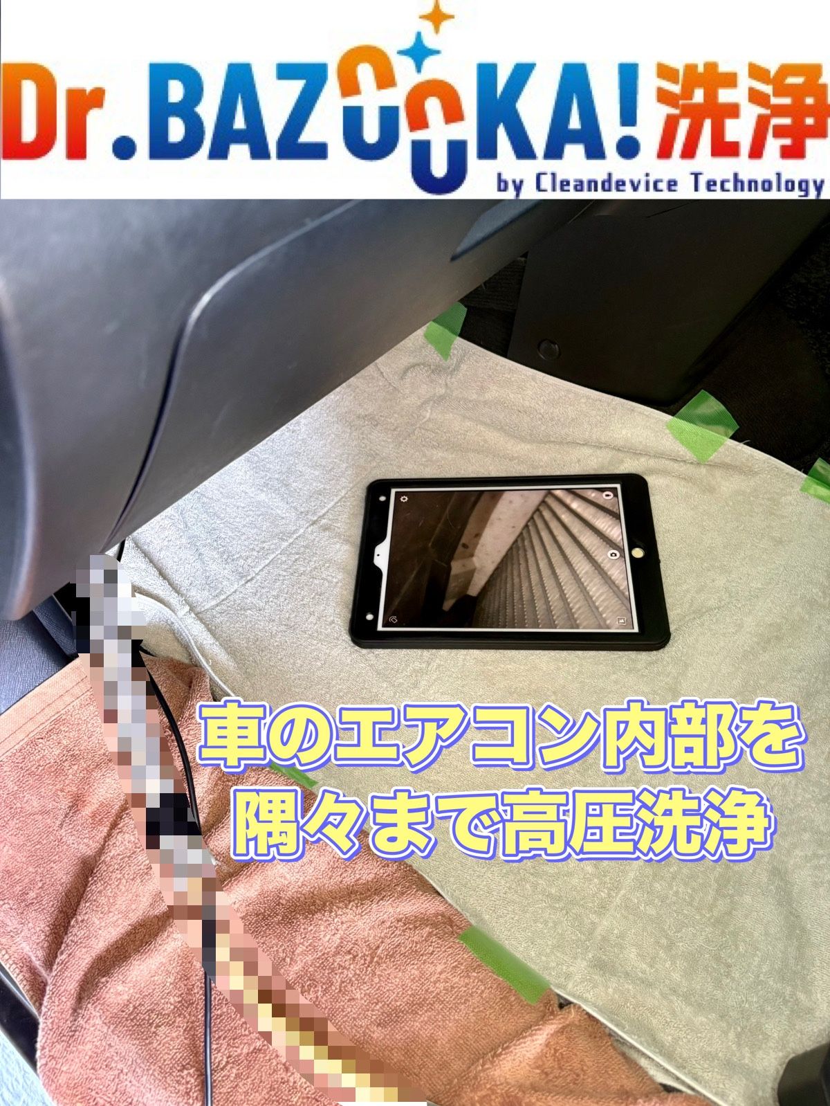 エアコンからの嫌なニオイを取り除くには、しっかりエアコン内部をカメラで見ながら根本原因を取り除くDr.BAZOOKA!洗浄(特許取得のカーエアコンクリーニング)が一番です‼️