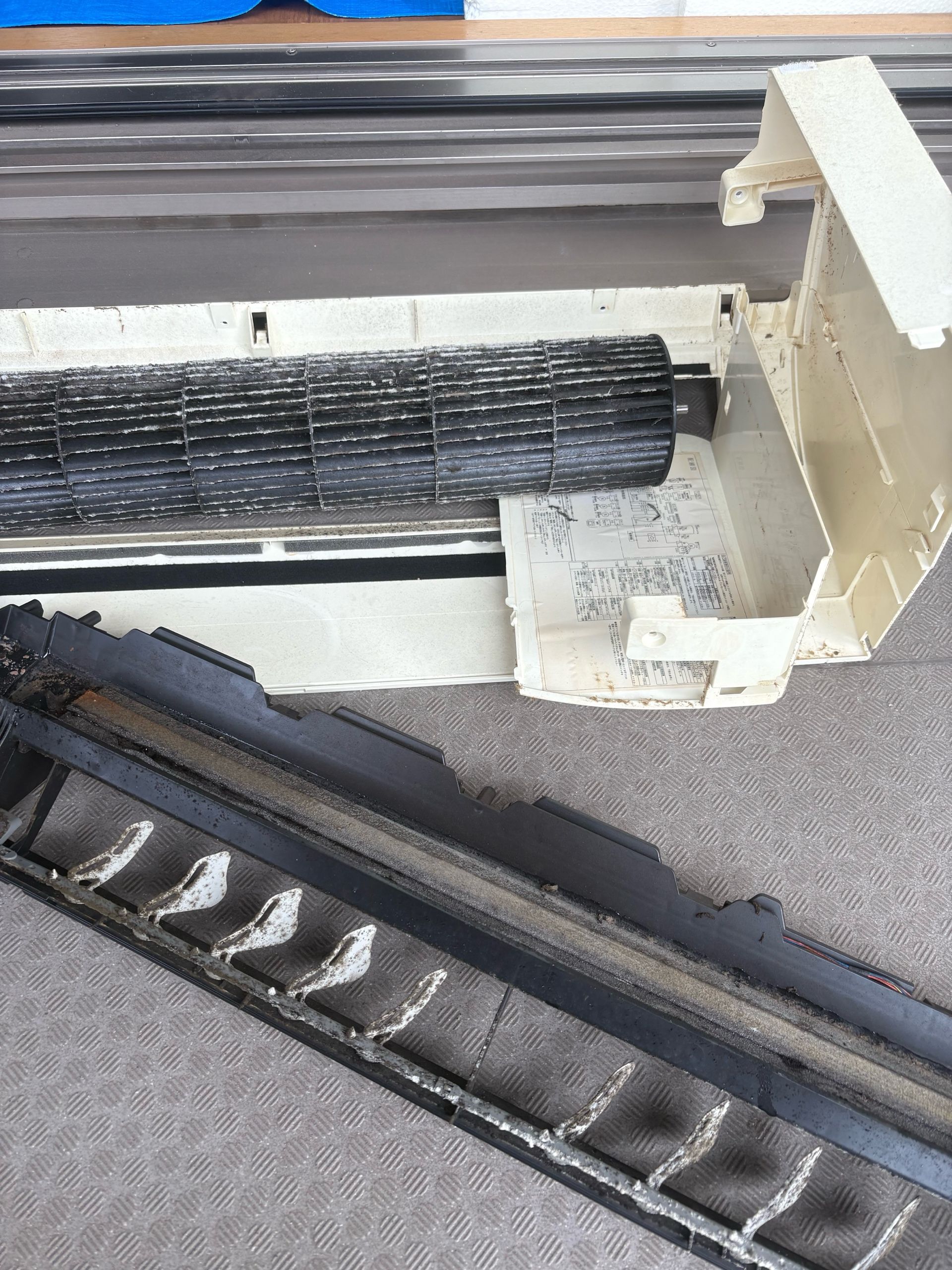 こちらのお宅では猫ちゃんを飼われており、「フィルター掃除はしているけれど、最近エアコンの臭いが気になる」とのことでご依頼をいただきました。