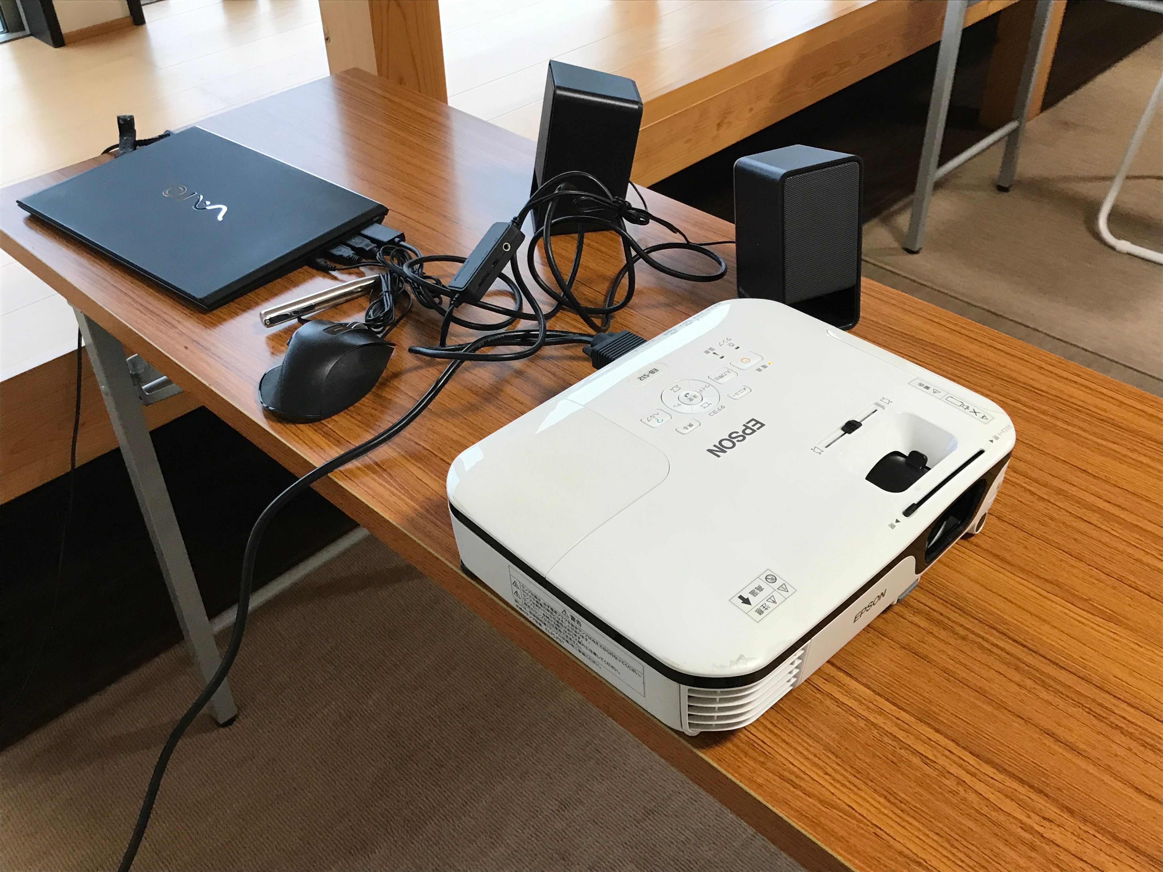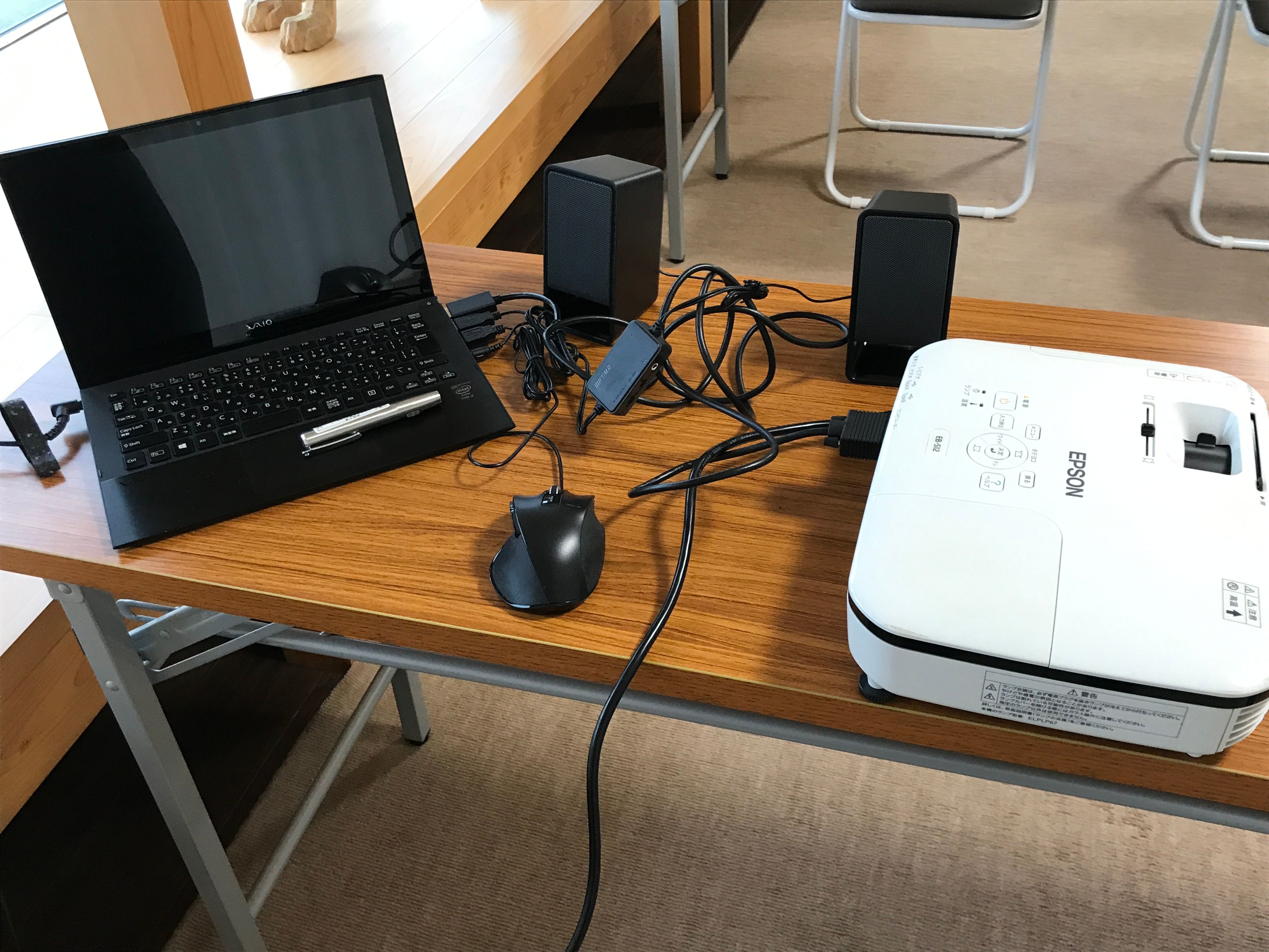 依頼でした。しかし、パソコンから音声を出力できず、プロジェクタに出力するポートも
