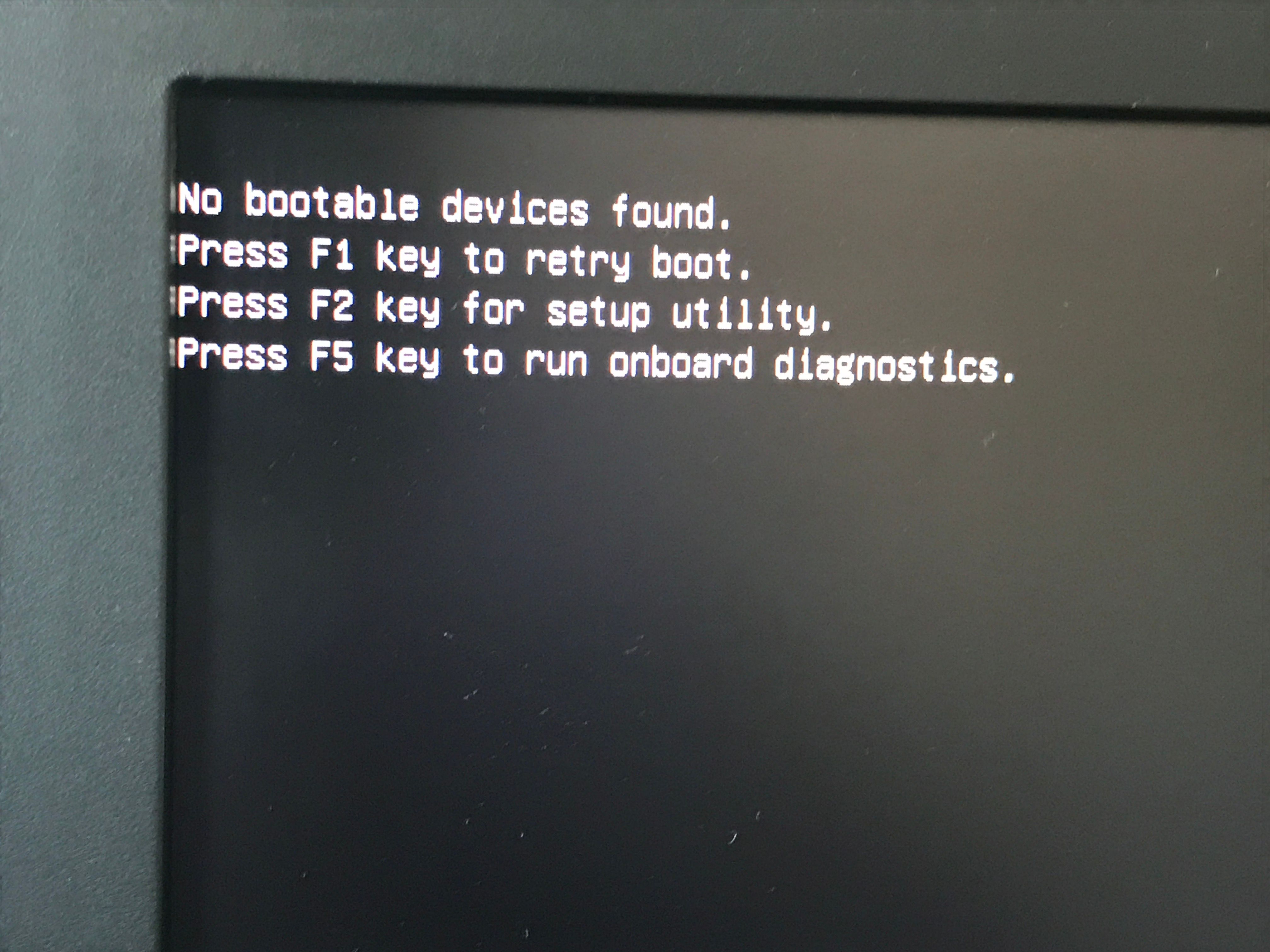 デスクトップ一体型(オールインワン)パソコンをお使いのお客様から、パソコン上、真っ黒な画面になり、その画面上に、〝No bootable devices found. Press F1 key to return boot. Press F2 key for setup utility.