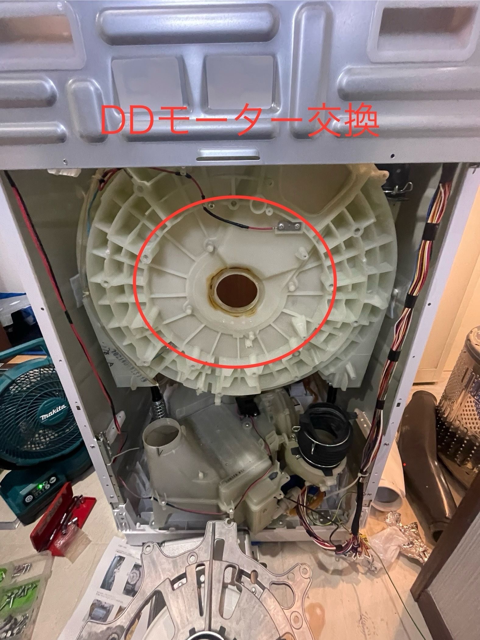 工具も取り出せない状況だったため、DDモーターDKごとの交換で対応しました。