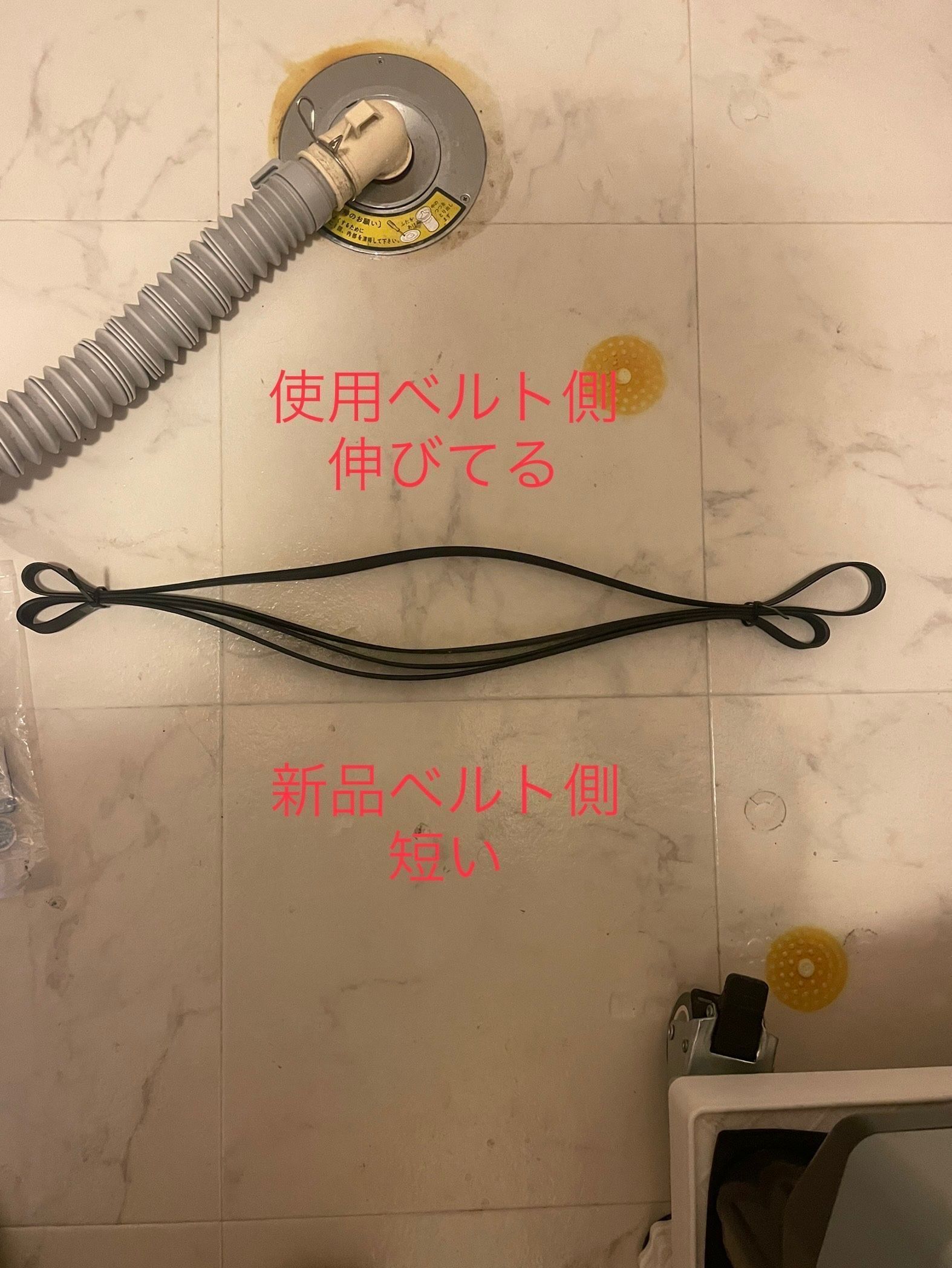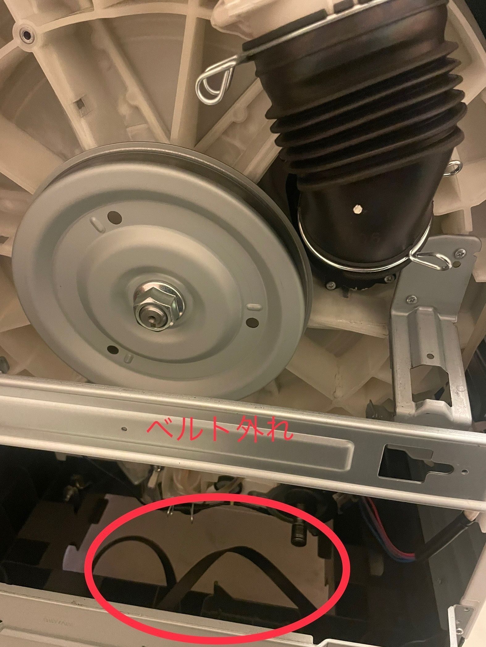 このベルトが外れることで、モーターが動いていてもドラムが回らず、異常を検知してエラーが表示されます。