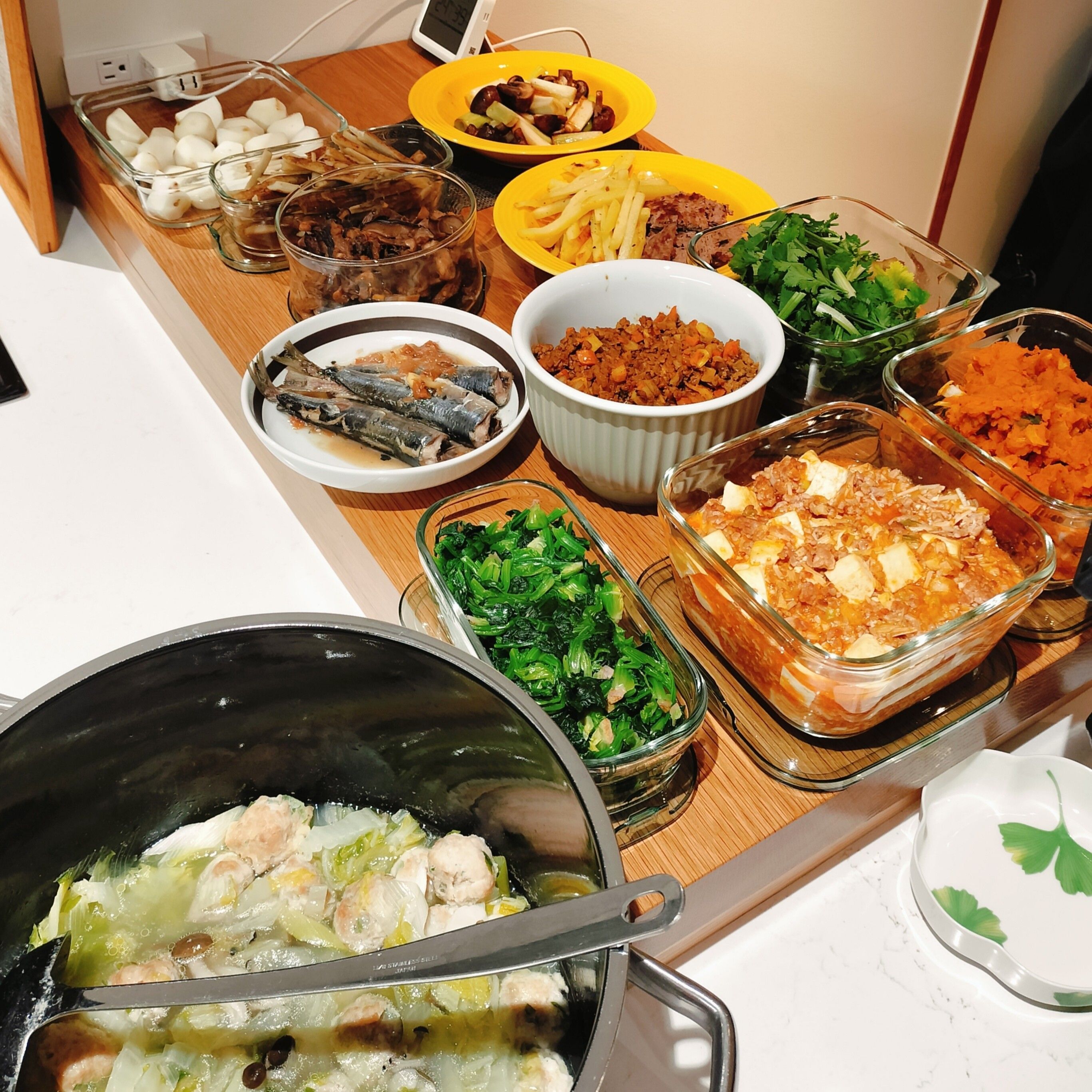 がめ煮、椎茸レバー、ほうれん草の下茹でが定番リクエストですが、エビカツ、鶏団子スープも定番になってきました!