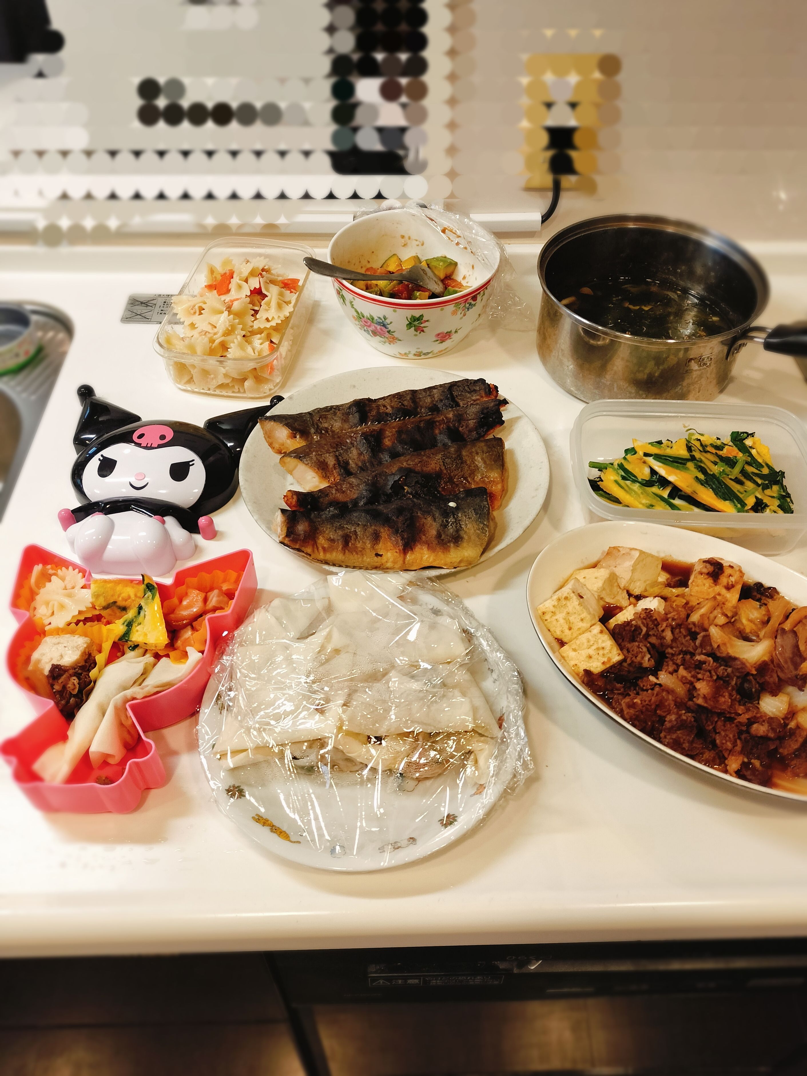 仕上げたおかずをお気に入りの“くろみちゃん”お弁当箱に詰めて、今夜はかわいいお弁当ディナーです🍱