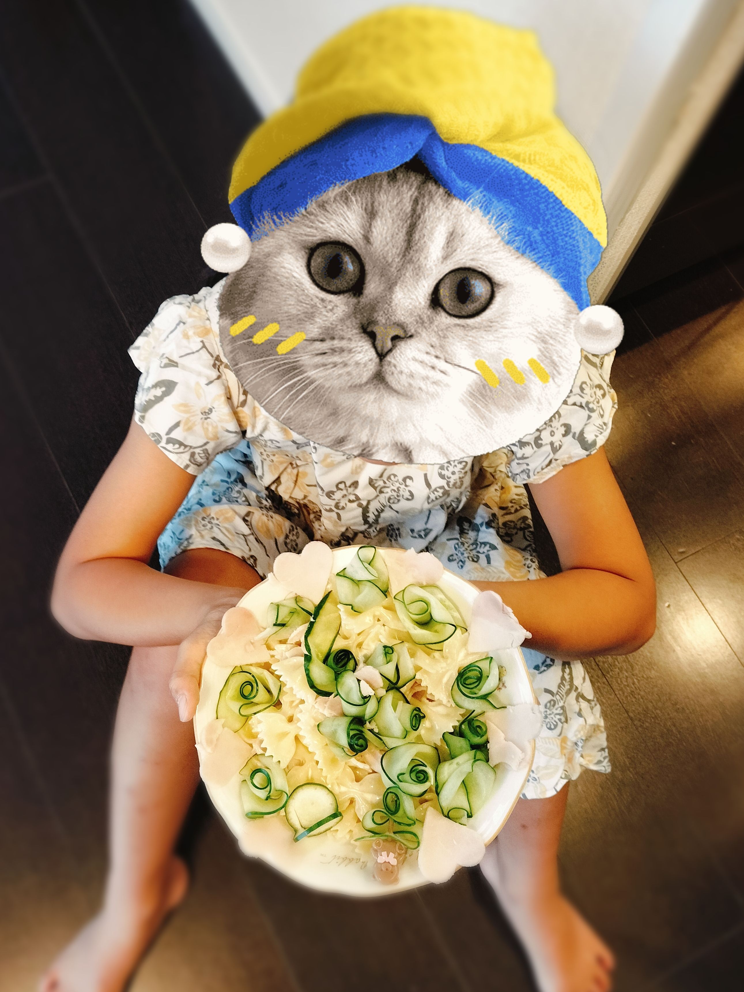 娘さんが帰宅してから、どう過ごそうかと考え、マカロニサラダの飾り部分を一緒に楽しむ事にしました!