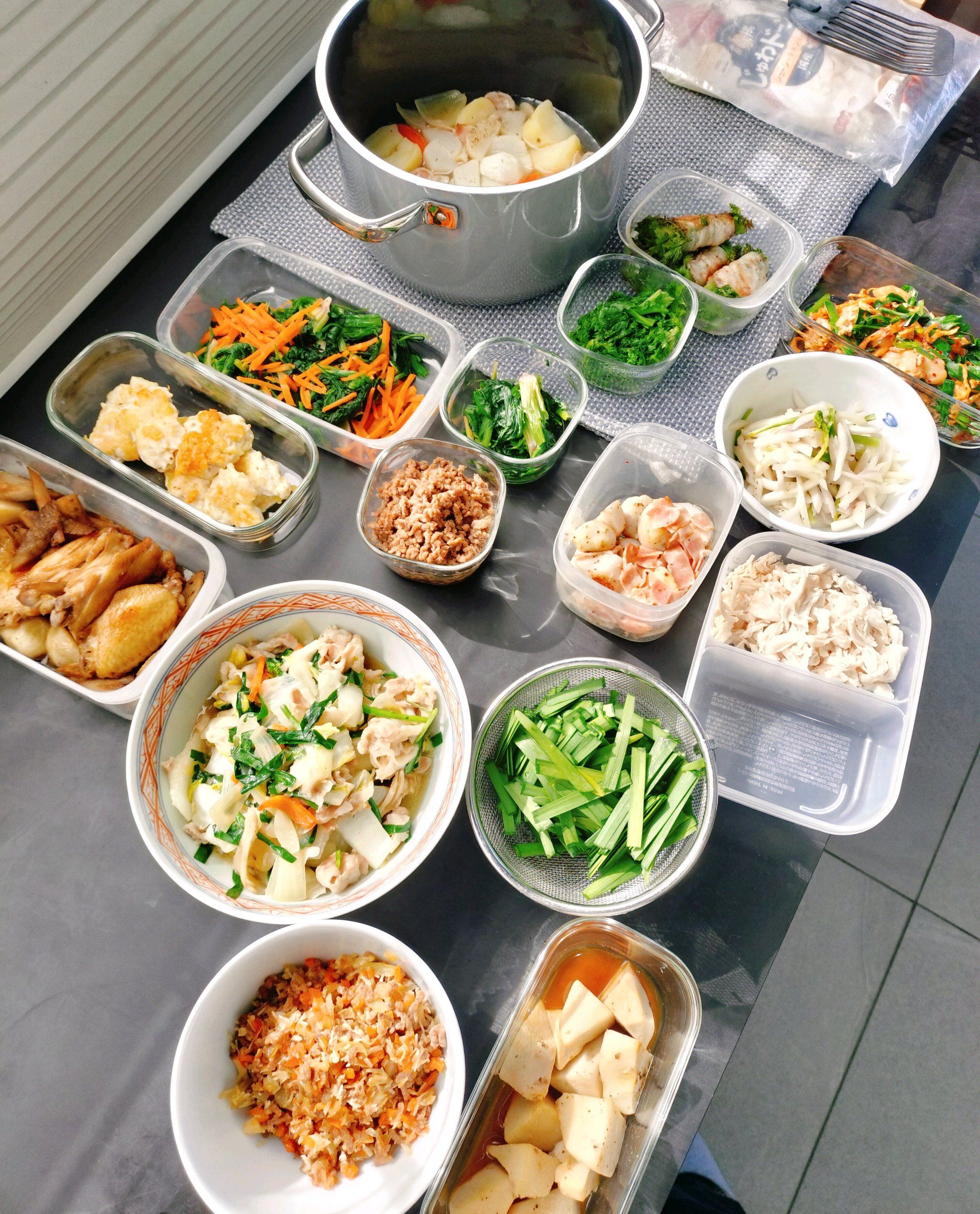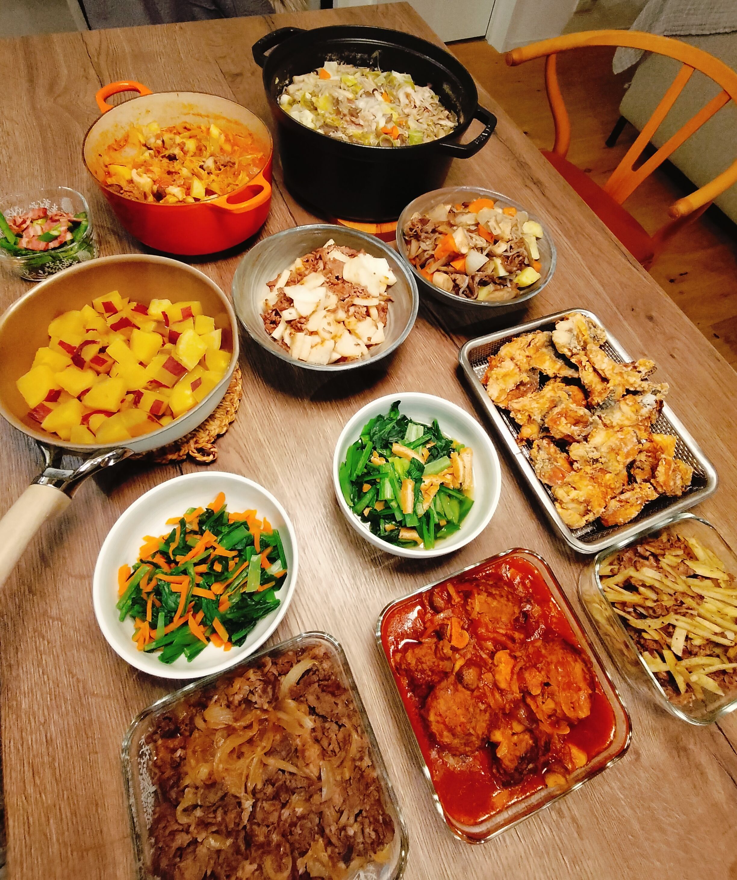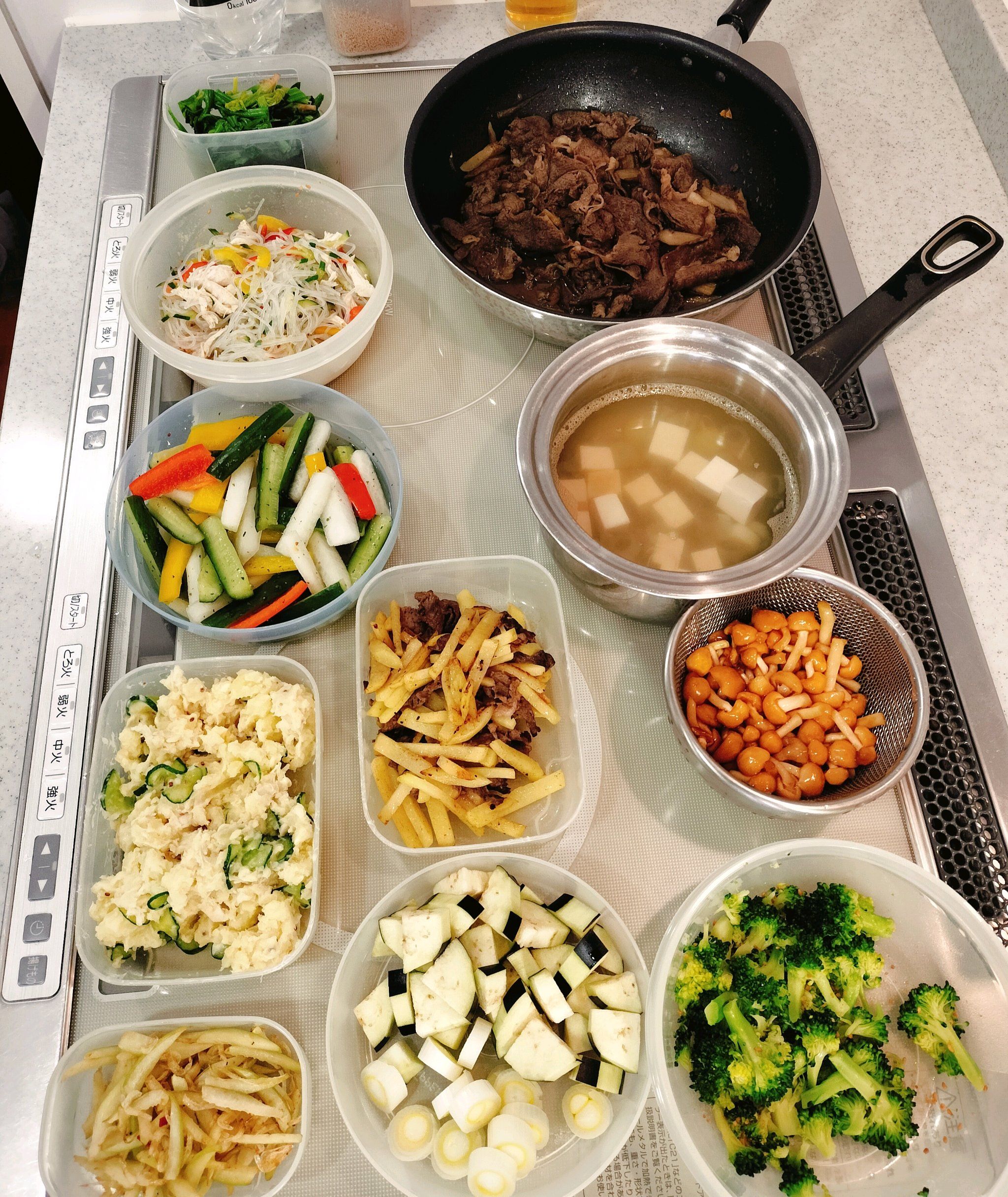 その後、今夜の夕食と明日の汁物用の野菜カット、副菜を数日分。