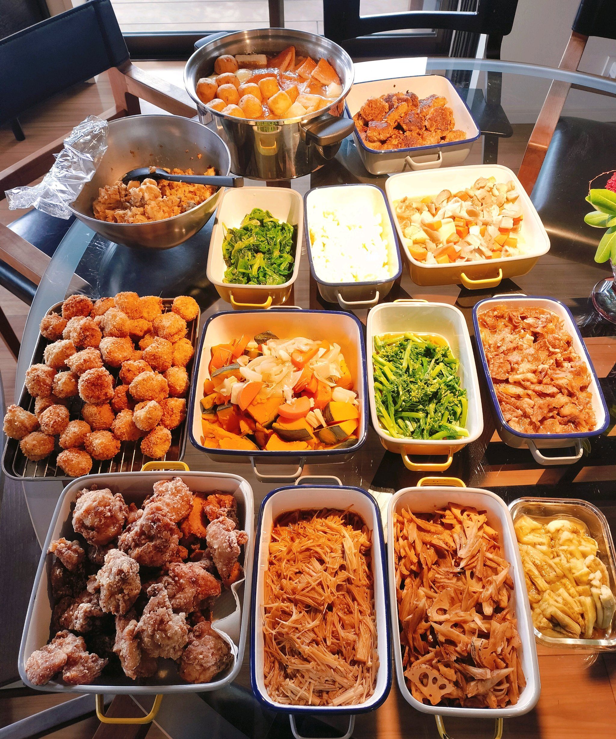 揚げ物や煮物、副菜など、作り置きできるものを中心にお作りしました。