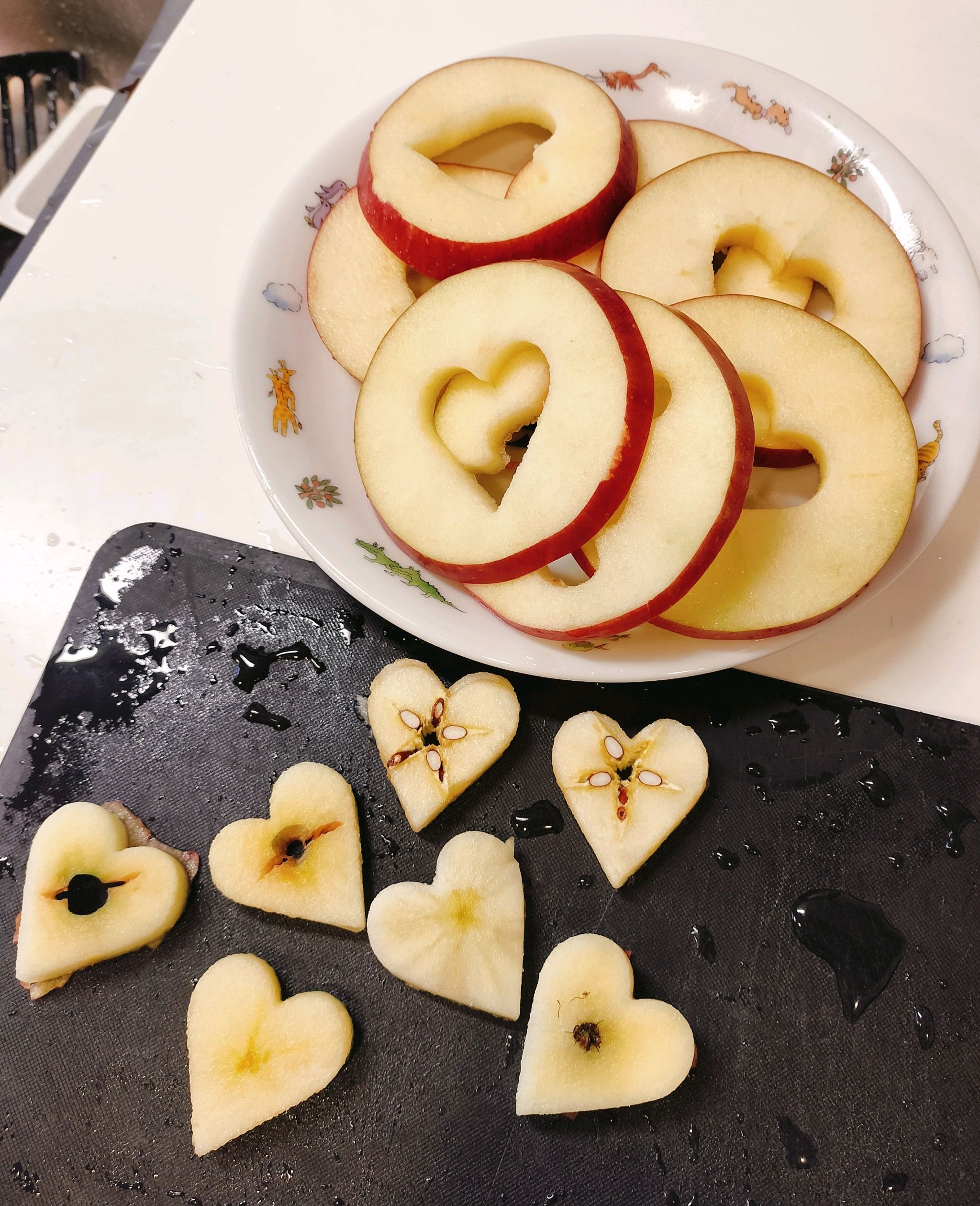 一緒に観察しながら、芯は型抜きでくり抜いてそのままおやつにしました。