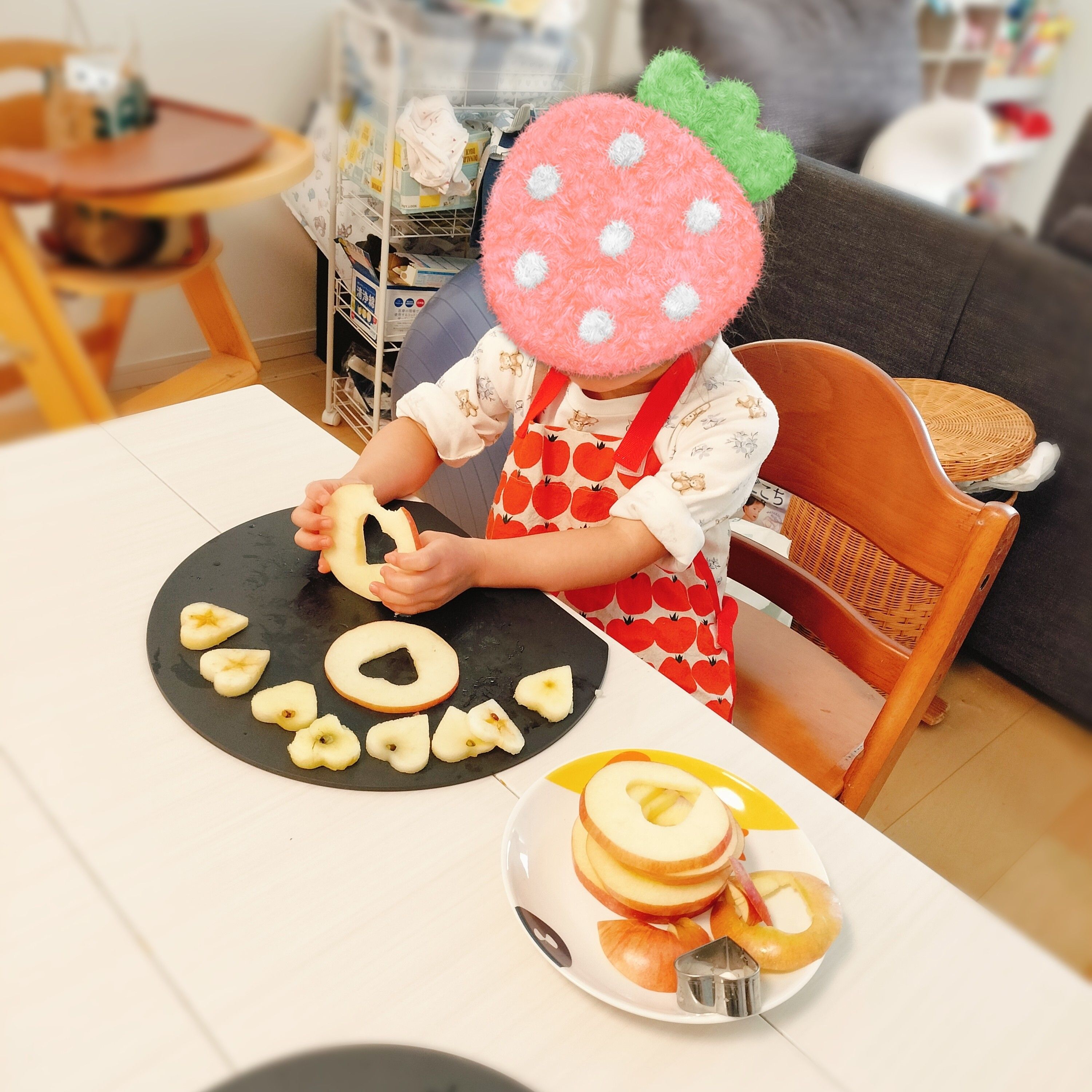 りんごの型抜きに、春巻き巻き、