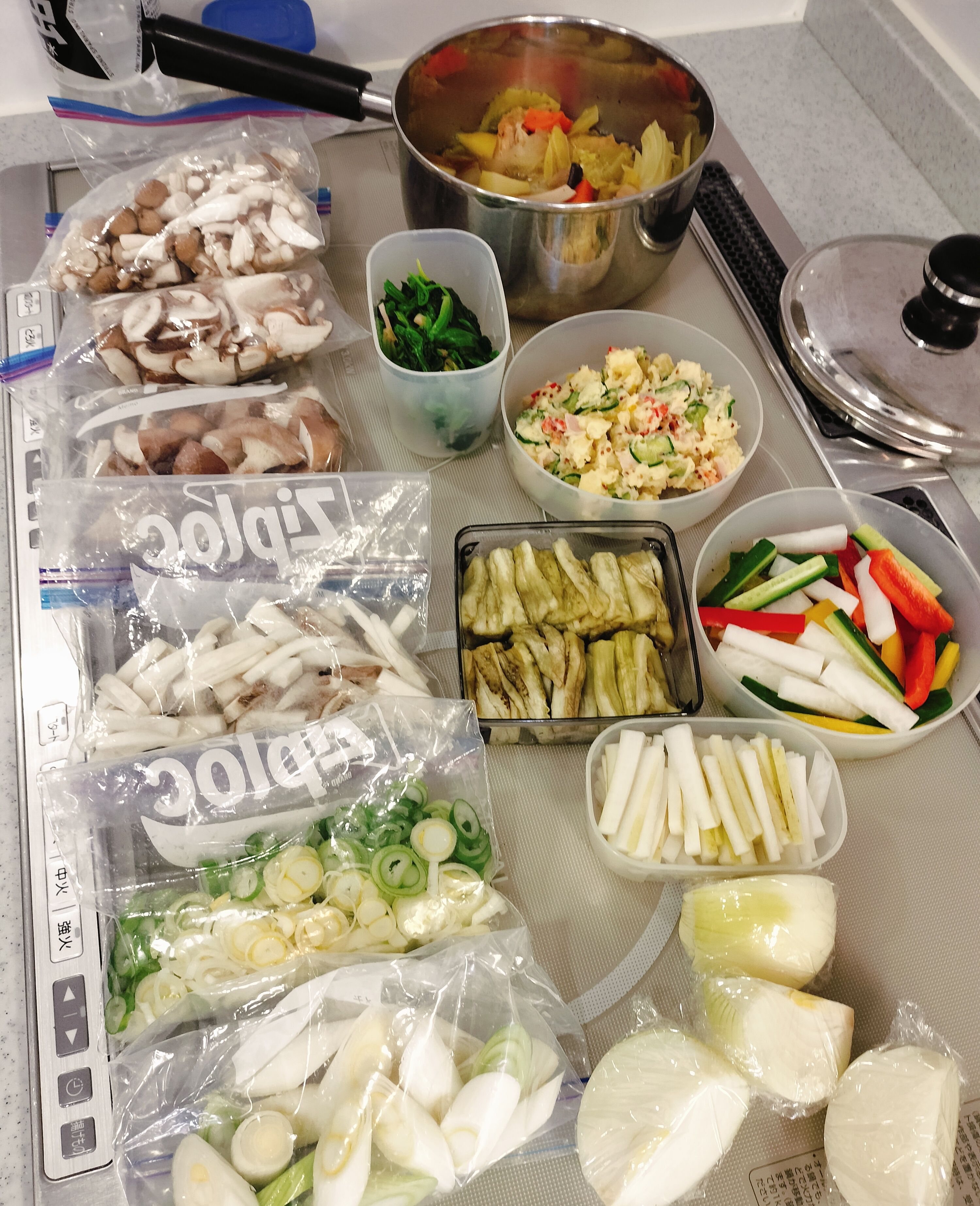 ・きのことネギは冷凍保存用にカット