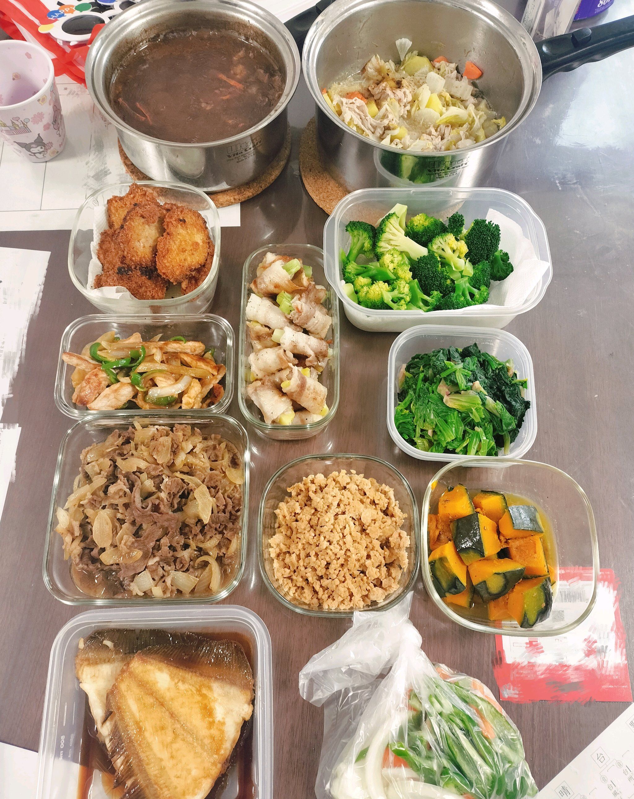 私はお知らせいただいたメニューを料理し、6つのおかずセットを作って冷蔵庫へ。