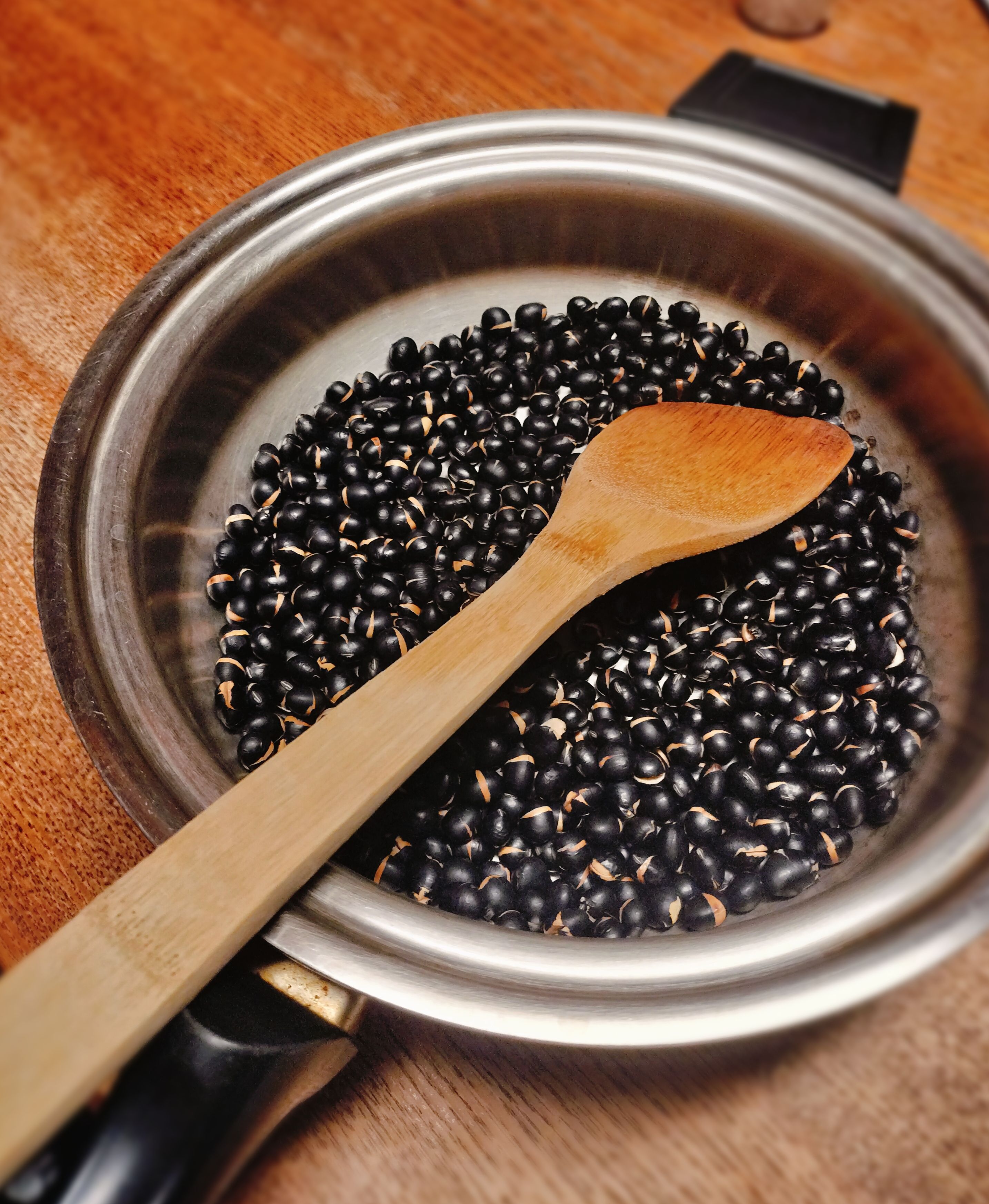 ① 乾燥黒豆を水でさっと洗い、ざるにあげて水気を切る