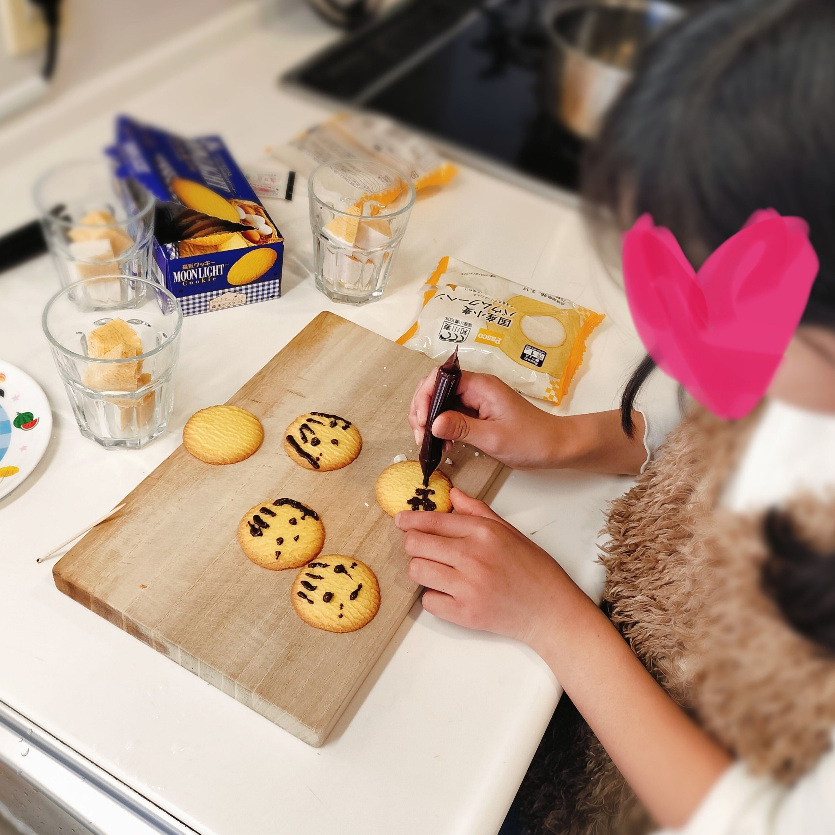 それから一緒に買い物に行き、今日はその下準備としてお絵かきクッキー作りをしました。