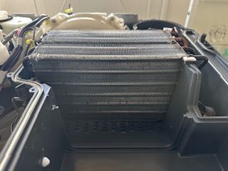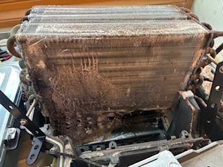 ビフォー:洗浄前はヒートポンプ内部にホコリ・洗剤カス・湿気による汚れが蓄積