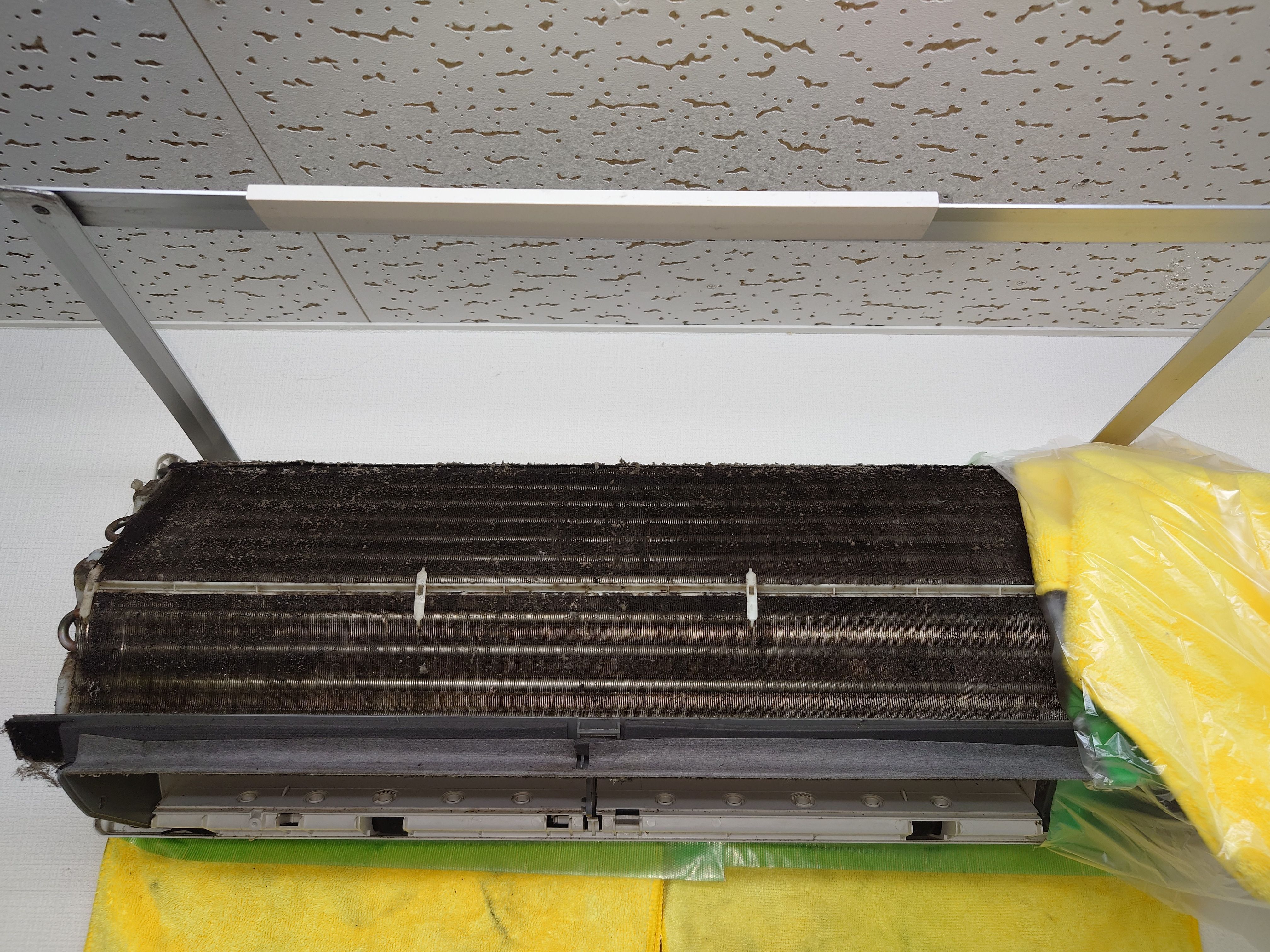 とあるご依頼で新座市のとあるスタジオのエアコン2台清掃だったのですが久しぶりの強敵です