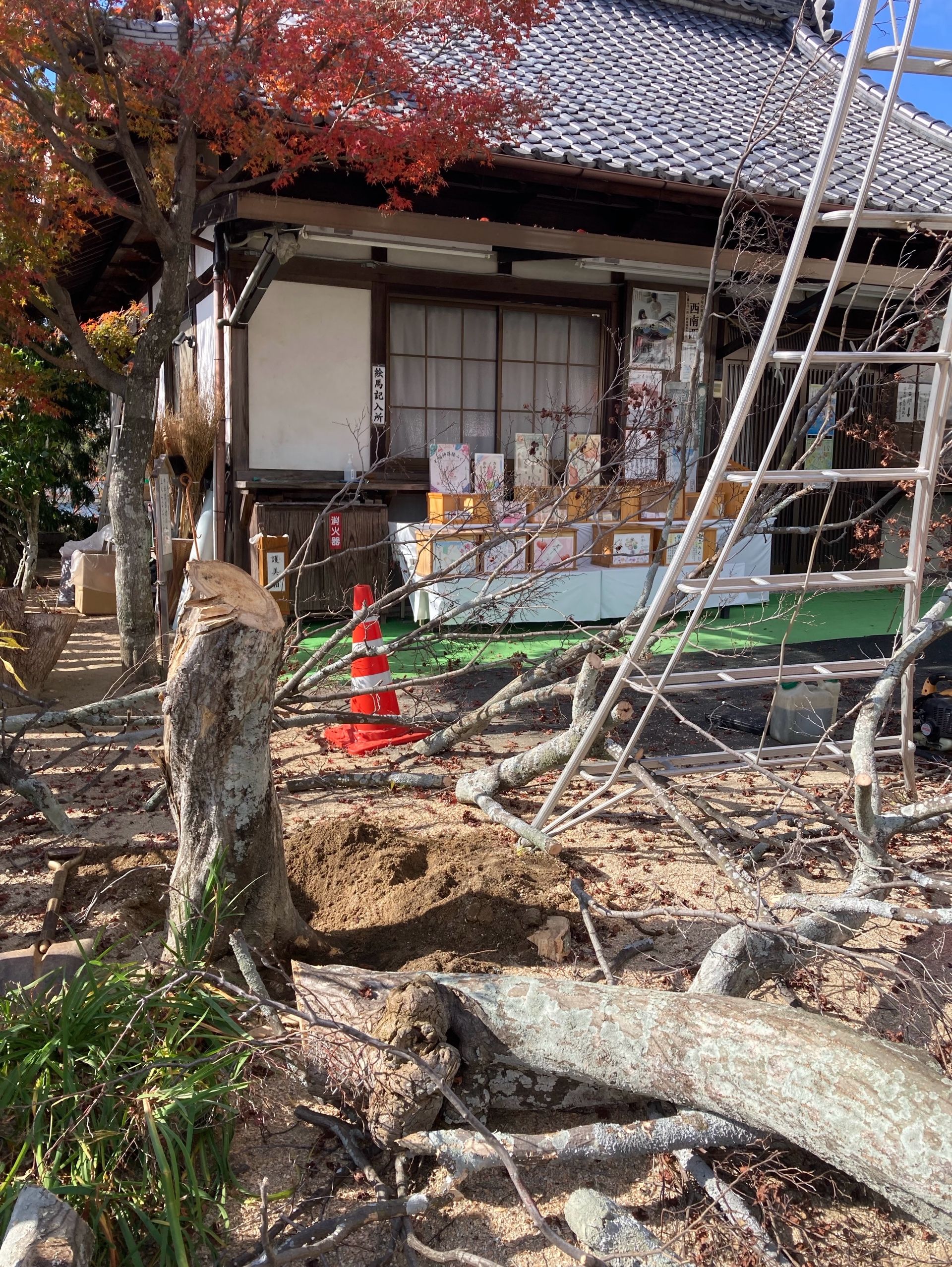 昨日は広島市西区草津の草津八幡宮で伐採作業でした。