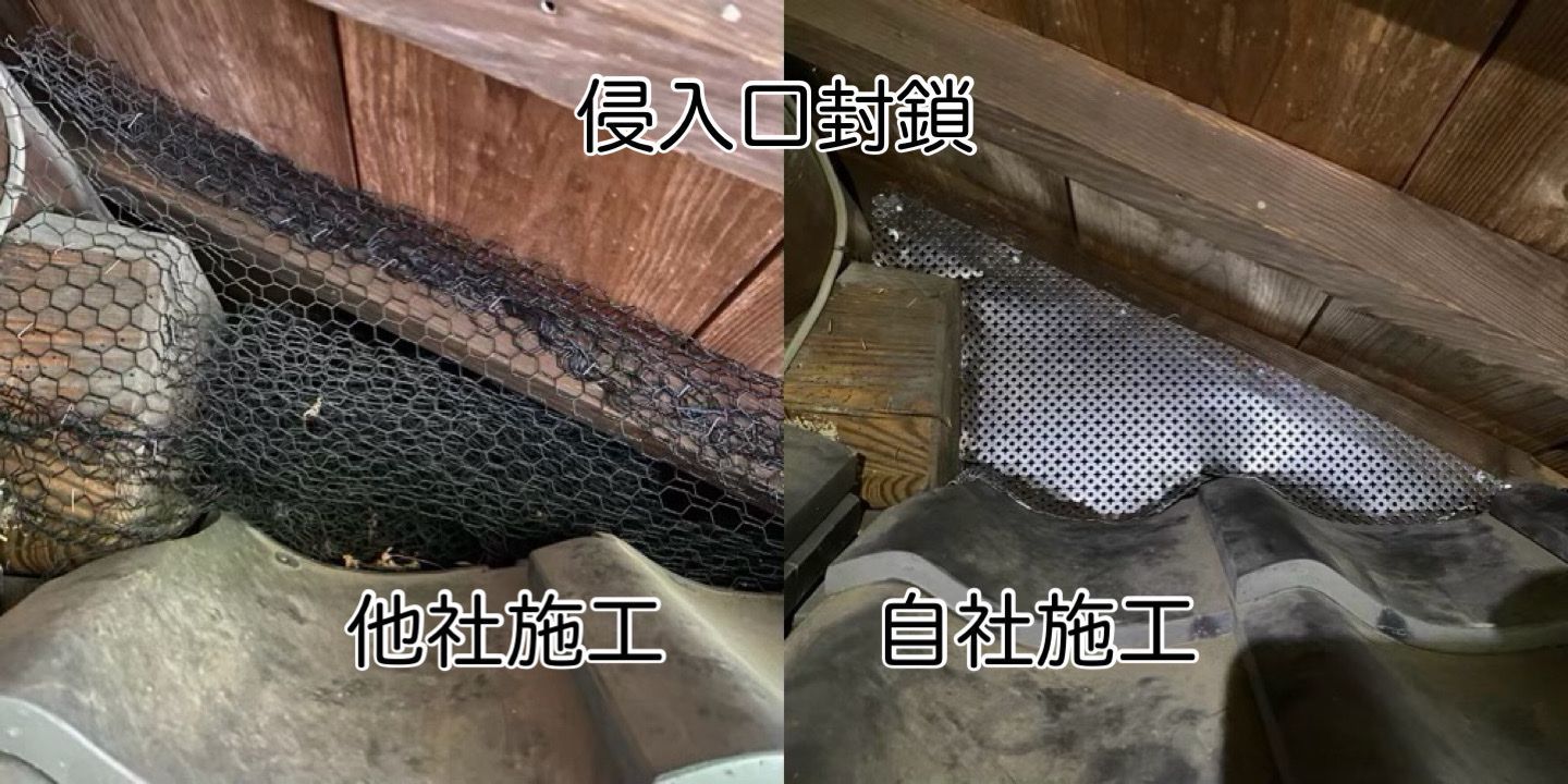 追い出し、点検口設置、フン清掃