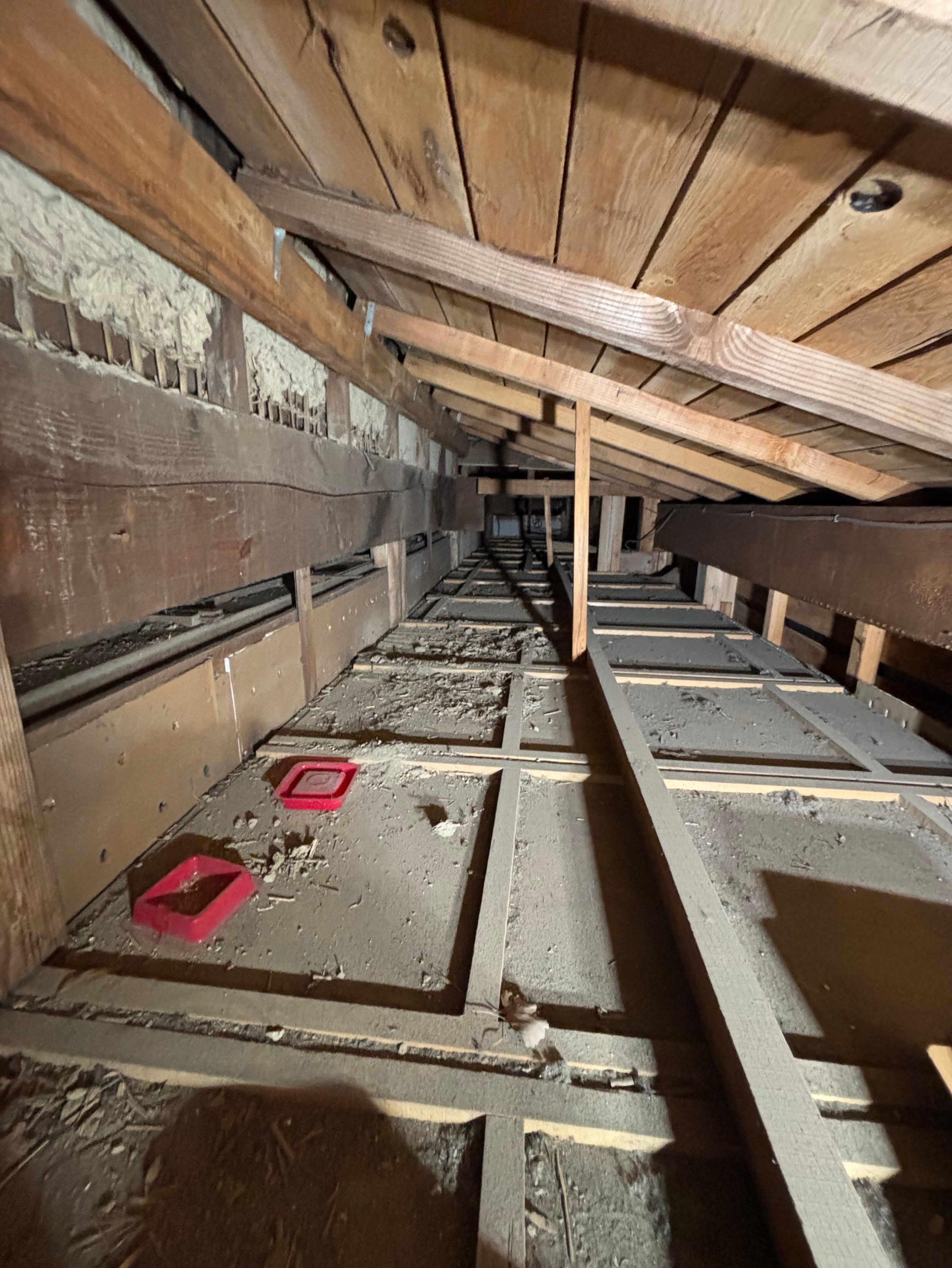 今回の施工では、まず追い出し作業を行い、ネズミが建物内に留まらない環境を作りました。その後、屋根裏・室内・外周を丁寧に点検し、確認できた侵入口を一つひとつ塞いでいきます。見えにくい場所ほど再発の原因になりやすいため、写真を撮りながら作業内容をお客様にもご説明しました。