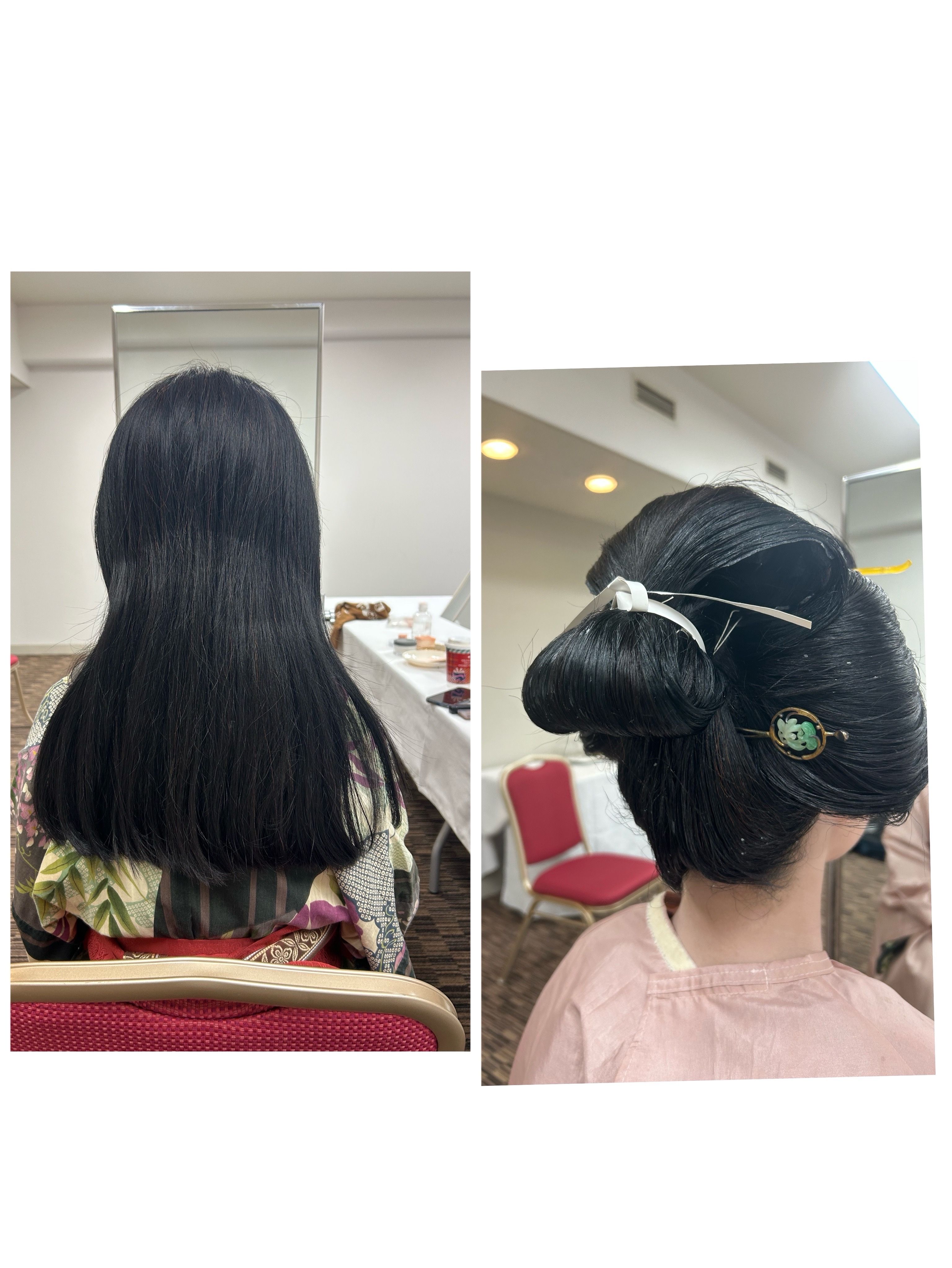 地歌舞を披露されるお客様に自髪で、島田髷を結いたいとご依頼頂きました。長さもあり、2時間かけて結い上げました。とてもご満足頂けたとの事で、私もとても嬉しいです。