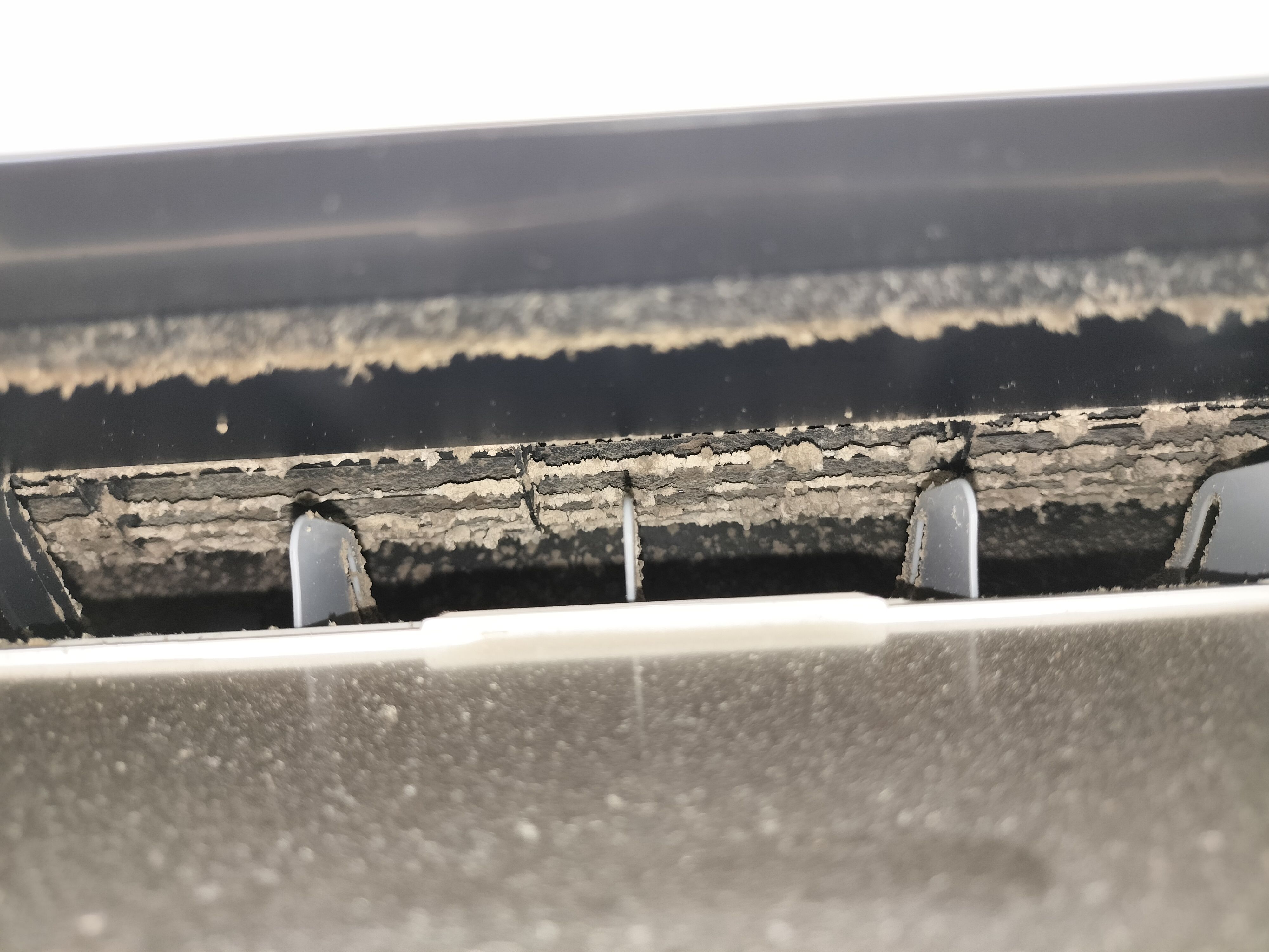 ②不安定に風が出る(風にむらがあるような音がする)→シロッコファン(室内機の中でぐるぐる回り風を送る部分)がを確認→埃べったりの場合は清掃が必要です