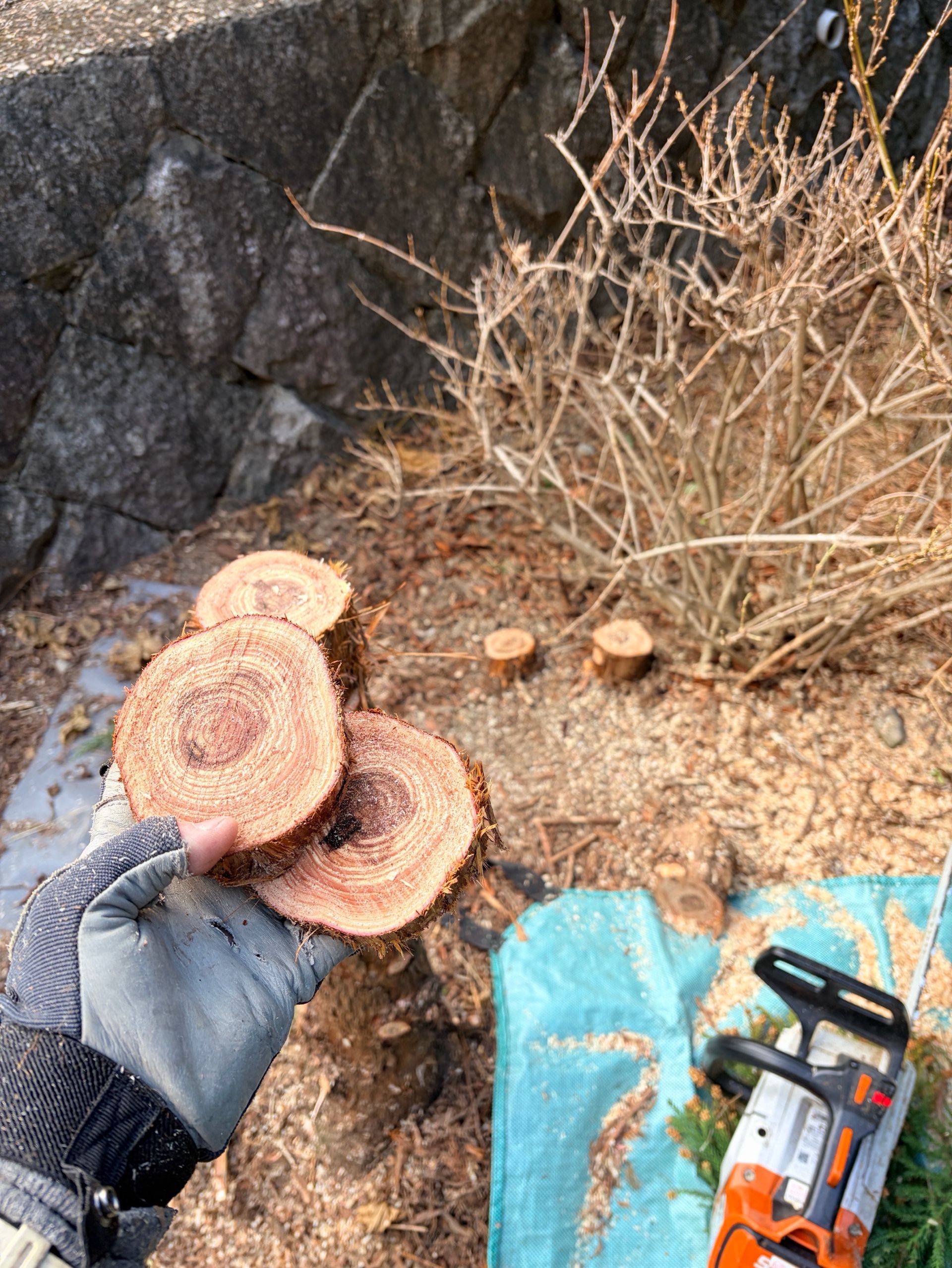 お仕事は、記念樹の伐採とのことで、一部を活かせるようにコースターサイズに伐らせていただきました。