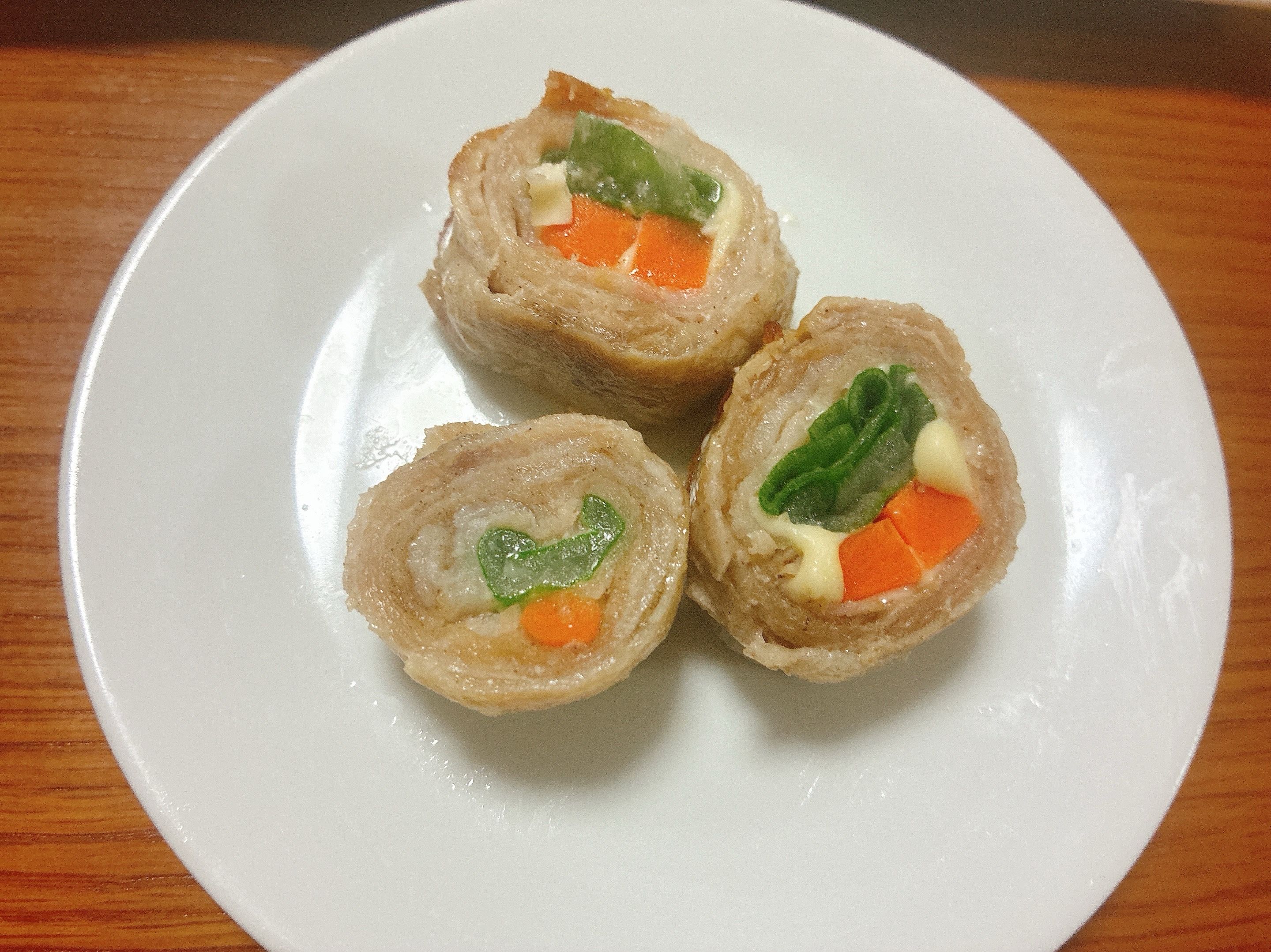 夫のおつまみに作ったら子供達がも喜んで食べてくれました✌️作り方はシンプルでヘルシー。材料は・豚肉の薄切り・野菜・スライスチーズ・塩コショウ・小麦粉・油少々