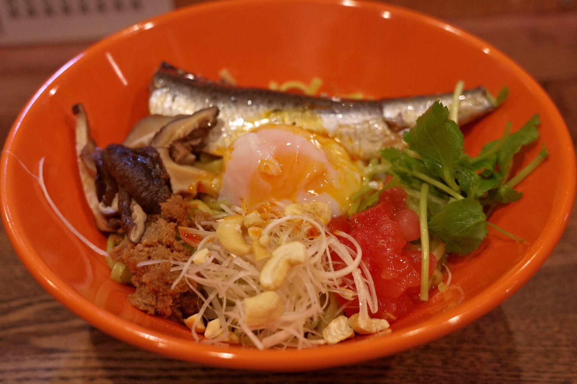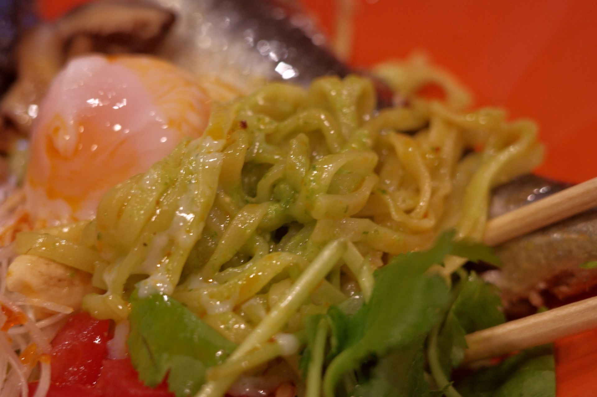 【鰯のコンフィのジェノヴァ風まぜそば】。