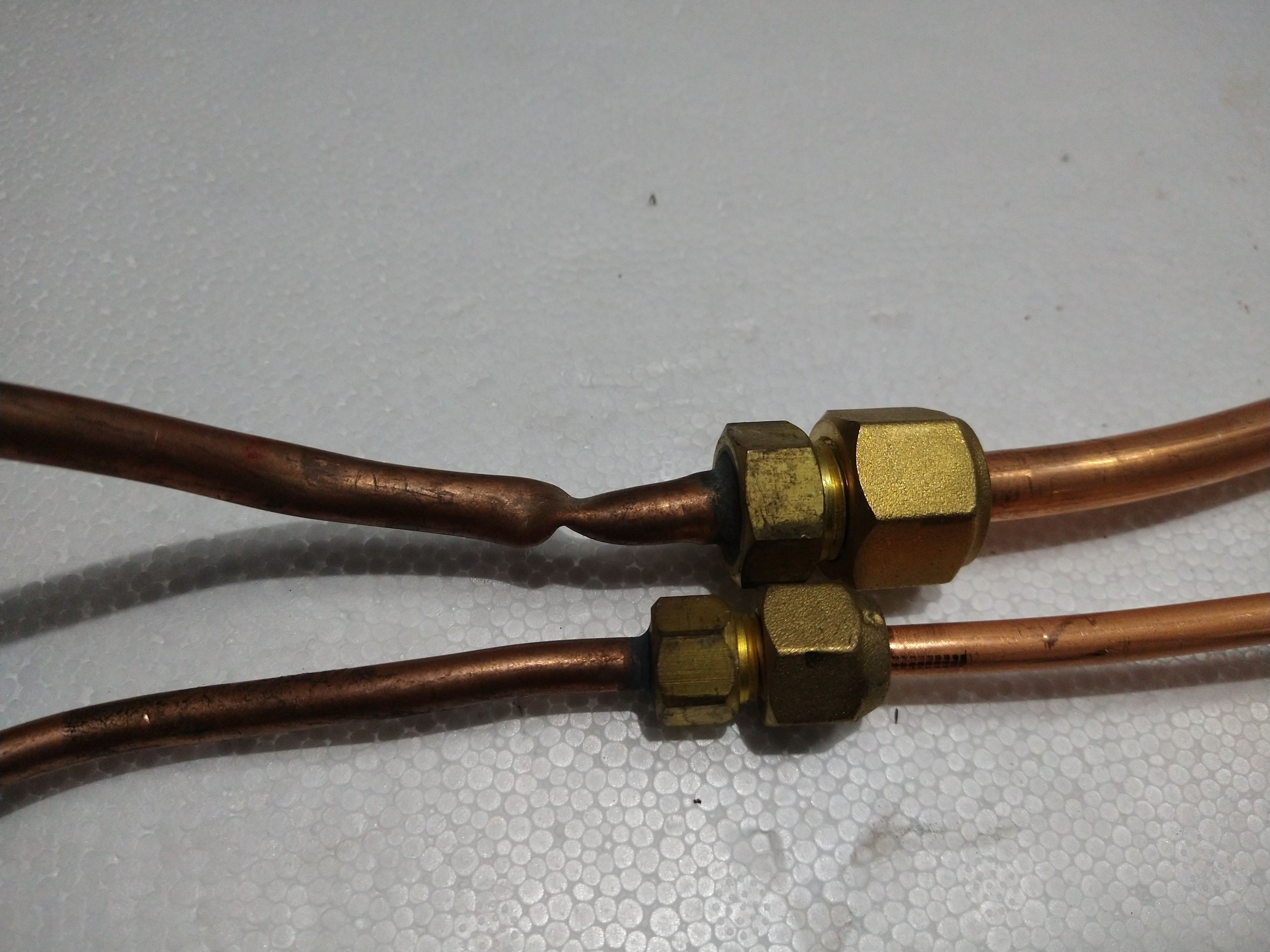 状態を確認せずに補助配管がねじれていたり、潰れていたまま設置して使用しますと、運転時に異音が発生して能力が低下したり、最悪の場合は室外機のコンプレッサーが故障して短期間で買い替えになります。