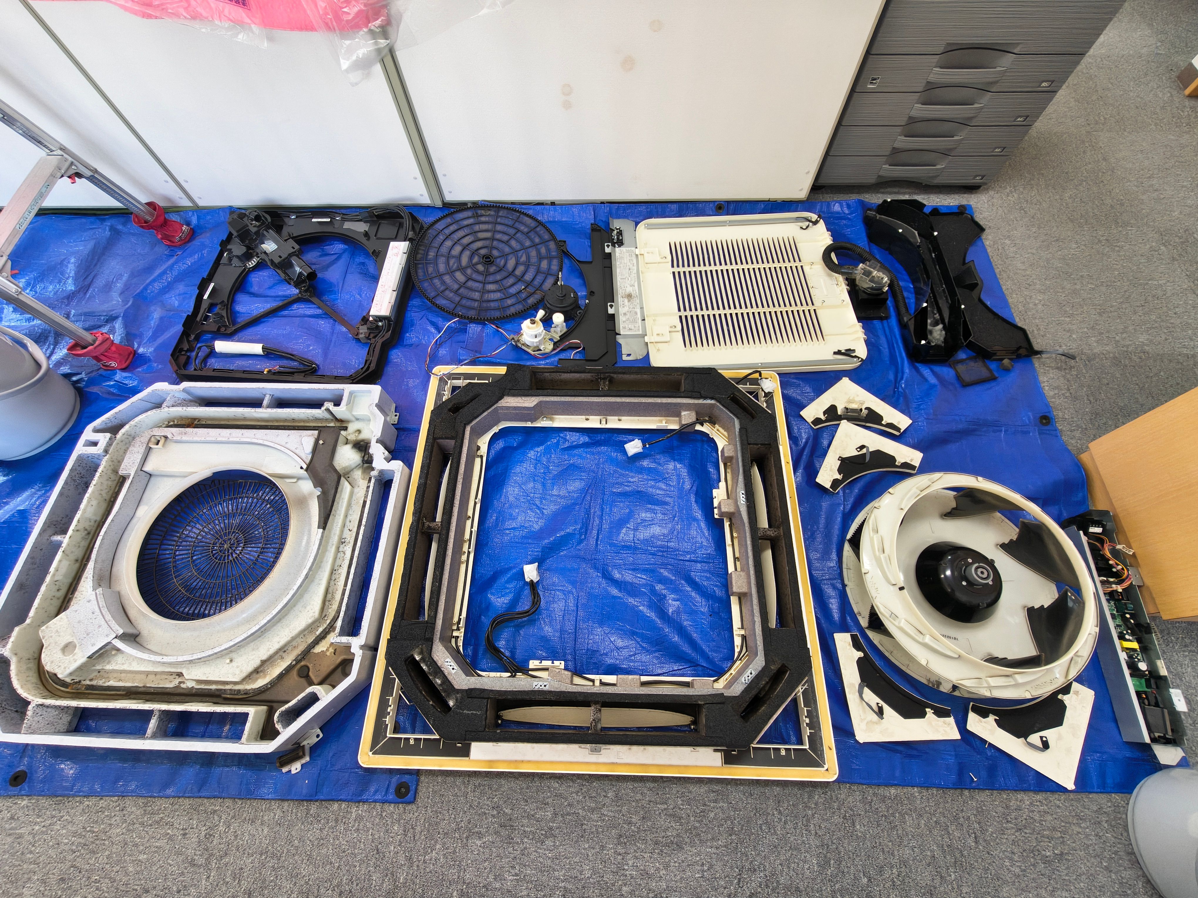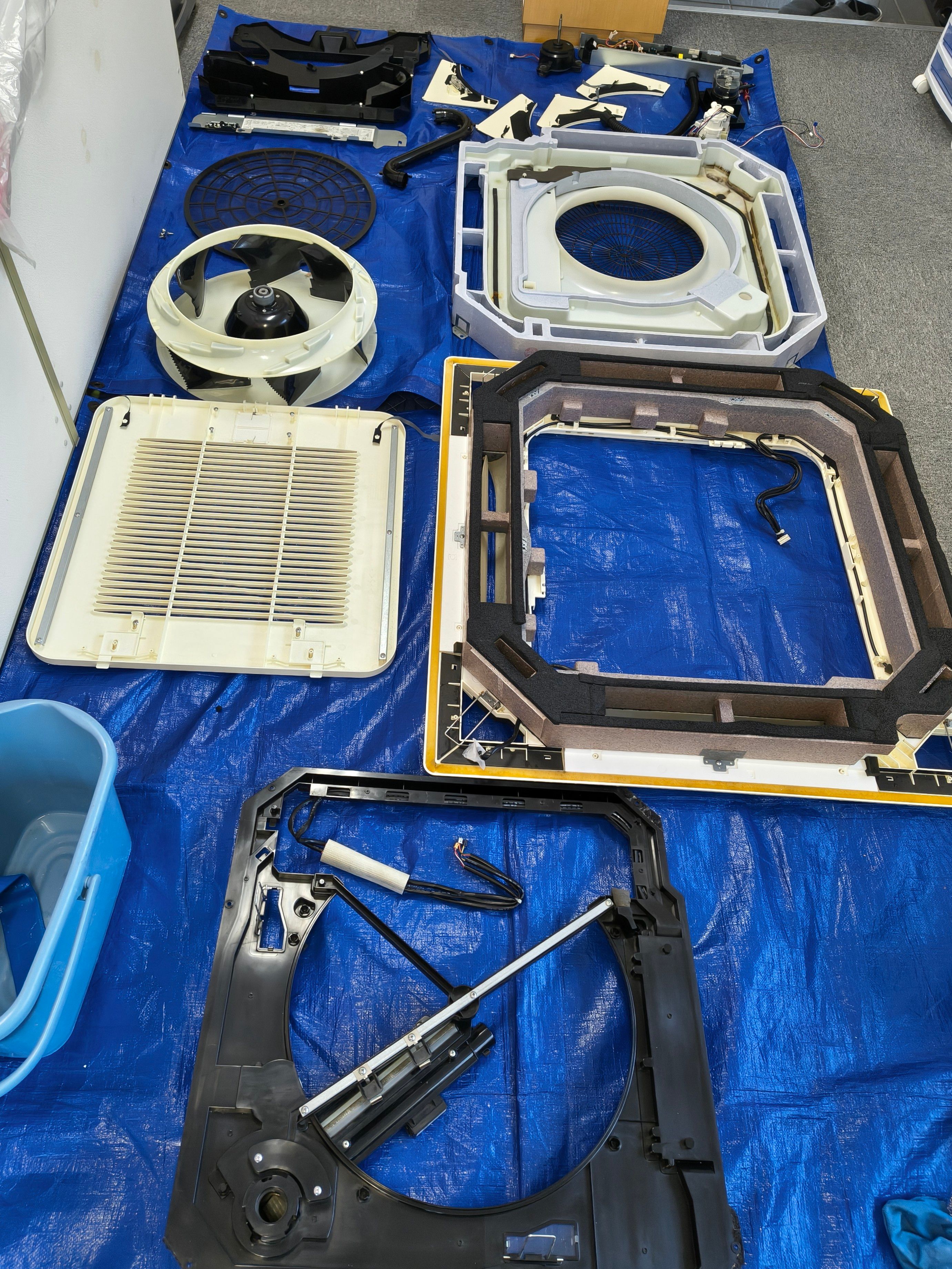 天井埋め込み4方向のエアコン清掃に行ってきました。