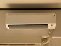 ②室内機置いてある場所のコンセントと壁穴がわかるような全体写真