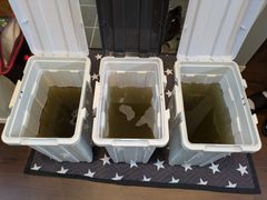 ◇1台20リットル以上の洗浄剤・除菌水でしっかり洗浄していきます。