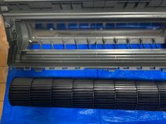 エアコンを宙吊りにして完全分解。新品同様の仕上がりを実現!