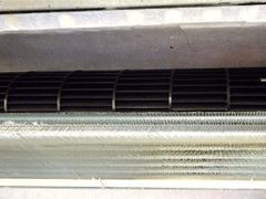 カバーやお掃除ユニットを取り外して、濡れてはいけない部分を養生して、内部のアルミフィン、吹き出し口のファン、ルーバーなどのカビやホコリなどの汚れを高圧洗浄します。