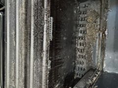当店では洗剤を惜しまずにスプレー散布ではなく、高圧洗浄機にて熱交換器の奥の奥まで浸透させて、すすぎも汚れが出なくなるまでしっかりとさせていただきますので仕上がりに自信があります。(スプレー散布ですと熱交換器の表面しか洗剤が効きません!)