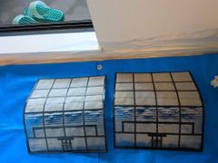 4台のエアコンと4台の室外機の清掃をお願いしました。希望日直前だったのにもかかわらず、台数が多いのでとお二人で来てくださいました。 10年ほぼたいした掃除もしてなかったため、完全分解掃除をお願いしたところ、とても汚れた状態でカビや油の汚れがひどく絶句してしまいました! そんな状態のエアコンと室外機でしたが、次々と手際良く洗浄してくださり、生まれ変わったかのようにピカピカになりました! 室外機含めて8台を黙々と6時間程かけて洗浄していただき、プロの仕事の素晴らしさに感動しました。 終わった後、ビフォーアフターの写真をたくさん送っていただいたのも見ごたえがあって嬉しかったです! こんなにキレイにお掃除していただき、今日から家族みんな快適に健康に過ごせそうです。 お願いする前は掃除に10万円もかけるなんて、、、とかなり悩みましたが、これは10万の価値があります! やっぱりプロはすごいと感じました。 掃除の間に質問をした際も、真摯に気持ちよく答えてくださいました。 完全分解掃除の後は2年に1度位のペースで通常清掃で良いとお聞きしました。 また、次回もぜひお願いしたいと思います。