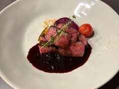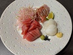 至福の時間を味わえる絶品コース! 先日、こちらで季節感あふれる豪華なコース料理を堪能しました。どのお皿も丁寧に仕上げられ、素材の持ち味が最大限に引き出されていました。 お刺身3点盛り合わせ 本鮪の濃厚な旨み、炙り刺しの香ばしさ、昆布締めの絶妙なねっとり感。それぞれが異なる食感と味わいで、最初から心を掴まれました。 魚介と季節野菜の磯辺揚げ 〜青のりと柚子胡椒のクリームソース〜 青のりの風味と柚子胡椒のピリッとしたアクセントが効いた濃厚なクリームソースが、カリッと揚がった魚介とふきのとうなどの野菜をさらに引き立てます。軽やかでありながら深みのある味わいでした。 季節野菜の和ポタージュ 長芋と新玉ねぎの甘みがぎゅっと詰まった滑らかなポタージュ。心まで温まる優しい味わいで、次の料理への期待が高まります。 鮮魚のグリル 〜ウニと白味噌のソース〜 ふっくらと焼き上げられた鮮魚に、ウニの濃厚な甘みと白味噌のコクが絶妙に絡み合います。贅沢なソースが魚の旨みをさらに引き立て、まさに至高の一品でした。 筍と季節野菜の炊き合わせ 〜貝出汁仕立て〜 旬の筍のシャキシャキ感と優しい貝出汁の旨みが調和した炊き合わせは、ほっと落ち着く味わい。繊細な味付けが素材の良さを引き出していました。 和牛ステーキ 絶妙な火入れで仕上げられた和牛は、噛むたびに肉汁と旨みが広がります。柔らかさとジューシーさが際立ち、まさに極上のステーキでした。 蟹の土鍋パエリア 〆には蟹の旨みたっぷりの土鍋パエリア。香ばしいおこげとふっくらとしたご飯に蟹の風味が染み渡り、最後まで感動の連続でした。 全体を通して、素材の旬と和の心を感じさせる素晴らしいコースでした。どれも一口食べるたびに驚きと幸せを感じることができ、心もお腹も大満足です。ぜひ、大切な人と一緒に訪れてみてください。