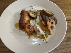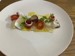 至福の時間を味わえる絶品コース! 先日、こちらで季節感あふれる豪華なコース料理を堪能しました。どのお皿も丁寧に仕上げられ、素材の持ち味が最大限に引き出されていました。 お刺身3点盛り合わせ 本鮪の濃厚な旨み、炙り刺しの香ばしさ、昆布締めの絶妙なねっとり感。それぞれが異なる食感と味わいで、最初から心を掴まれました。 魚介と季節野菜の磯辺揚げ 〜青のりと柚子胡椒のクリームソース〜 青のりの風味と柚子胡椒のピリッとしたアクセントが効いた濃厚なクリームソースが、カリッと揚がった魚介とふきのとうなどの野菜をさらに引き立てます。軽やかでありながら深みのある味わいでした。 季節野菜の和ポタージュ 長芋と新玉ねぎの甘みがぎゅっと詰まった滑らかなポタージュ。心まで温まる優しい味わいで、次の料理への期待が高まります。 鮮魚のグリル 〜ウニと白味噌のソース〜 ふっくらと焼き上げられた鮮魚に、ウニの濃厚な甘みと白味噌のコクが絶妙に絡み合います。贅沢なソースが魚の旨みをさらに引き立て、まさに至高の一品でした。 筍と季節野菜の炊き合わせ 〜貝出汁仕立て〜 旬の筍のシャキシャキ感と優しい貝出汁の旨みが調和した炊き合わせは、ほっと落ち着く味わい。繊細な味付けが素材の良さを引き出していました。 和牛ステーキ 絶妙な火入れで仕上げられた和牛は、噛むたびに肉汁と旨みが広がります。柔らかさとジューシーさが際立ち、まさに極上のステーキでした。 蟹の土鍋パエリア 〆には蟹の旨みたっぷりの土鍋パエリア。香ばしいおこげとふっくらとしたご飯に蟹の風味が染み渡り、最後まで感動の連続でした。 全体を通して、素材の旬と和の心を感じさせる素晴らしいコースでした。どれも一口食べるたびに驚きと幸せを感じることができ、心もお腹も大満足です。ぜひ、大切な人と一緒に訪れてみてください。