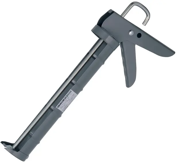コーキングガンとは、チューブ容器に入っているコーキング材をセットして、ハンドルを握るとコーキング材を均等に出せる工具です。