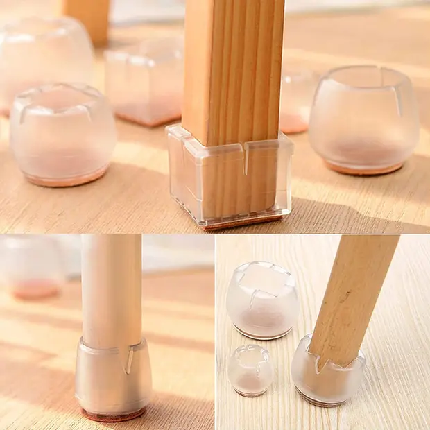 Mukeyoの椅子脚カバーは丈夫なシリコン製なので、装着も簡単。女性でも力を入れず、簡単に取り付け・取り外しが可能です。クリアータイプのキャップなので、家具のデザインを損なうことなく使えます。