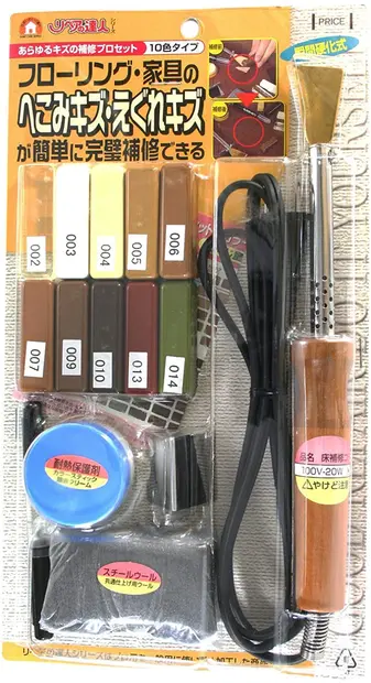 様々な商品が販売されていますが、なかでも便利なのは、電気コテや仕上げ用ウールなど、修理作業に必要なアイテムがセットになっている製品。使用方法も製品に記載されているので、DIYに慣れていない方でもスムーズに使えることでしょう。