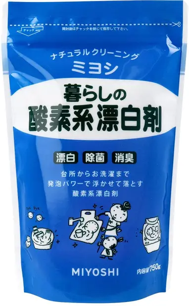 風呂釜掃除以外の掃除でも活躍する酸素系漂白剤。こちらはクエン酸や重曹などエコ石鹸を販売しているミヨシ石鹸の酸素系漂白剤です。