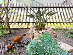 お世話になりました。 ありがとうございました♪ 鉢いっぱいに根が張って、はちきれそうになっていた、ストレリチア(極楽鳥花)の植え替えをお願いしました。 前回、裏庭の花壇の整えで作ってもらっていた、石の枠をストレチアの大きさとの兼ね合いで、石の枠をサイズダウンしてもらって、バランスがバッチリです‼︎ 風通し良くカットしてもらい、お花が咲くのが、楽しみです。 余った石や、家にあった木の枝で、動線を作るアイデアをいただき、木を並べたらりしたのも楽しかったです。 また、よろしくお願いします。