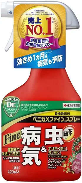 スプレータイプの殺虫剤は枝や葉に付く害虫を退治するのに便利です。